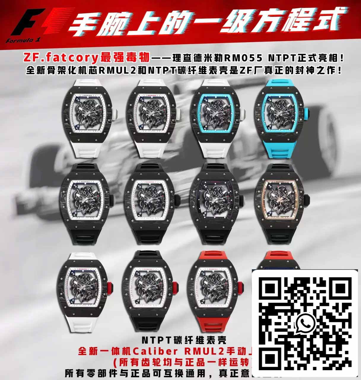 1. ZF 2024 Nouveau produit, le plus dangereux Richard Mille RM055 NTPT fait ses débuts - Le tout nouveau mouvement squelettique RMUL2 et le boîtier en fibre de carbone NTPT sont vraiment des créations légendaires de la ZF Factory!