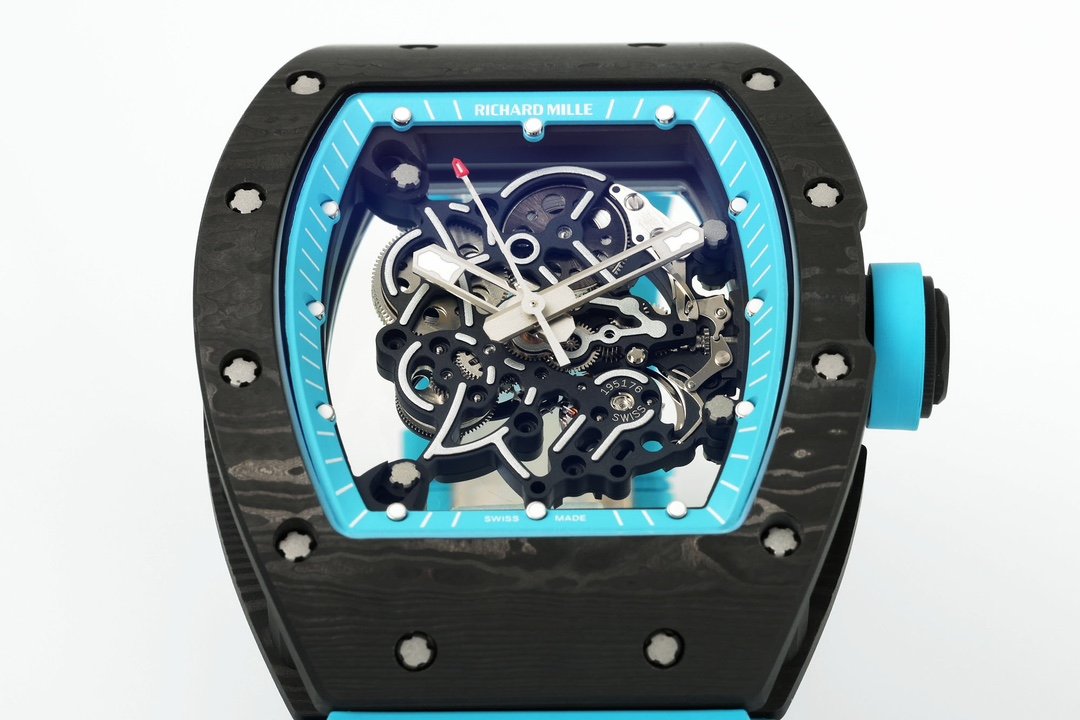 RICHARD MILLE RM055 RM-055 ZF 2024 1:1 Meilleure édition Boîtier en fibre de carbone Caoutchouc noir