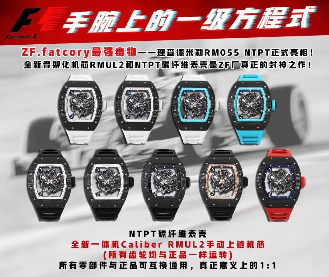 1. ZF 2024 Nouveau produit, le plus dangereux Richard Mille RM055 NTPT fait ses débuts - Le tout nouveau mouvement squelettique RMUL2 et le boîtier en fibre de carbone NTPT sont vraiment des créations légendaires de la ZF Factory!
