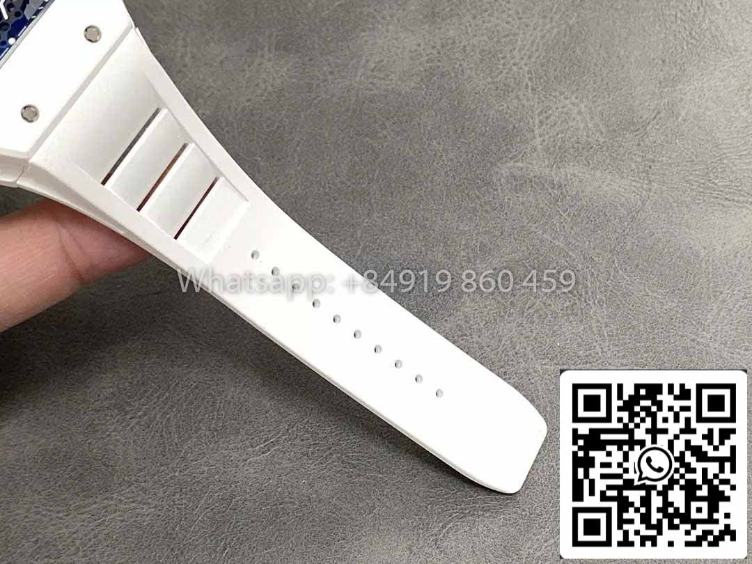 ZF.fatcory Richard Miller RM055 céramique officiellement dévoilé ! Nouveau mouvement squelette RMUL2 et boîtier en céramique [Boîtier Fengshen] Boîtier en céramique 49,90*42,70, grâce à un contrôle automatique spécial, les miroirs supérieur et inférieur sont taillés en saphir. Il a des performances confortables, légères et durables, connues sous le nom de « Formule 1 au poignet ». [Mouvement Fengshen] Le nouveau mouvement à remontage manuel intégré Caliber RMUL2, fabriqué en alliage de titane de grade 5, équipé d'un revêtement PVD et d'une plaque de base et d'une plaque de pont traitées Titalyt, assure la meilleure rigidité de la structure globale, une bonne planéité de surface des pièces et un fonctionnement parfait du train d'engrenages. Il dispose également de multiples fonctions telles qu'un barillet réglable pour le remontage et l'antichoc, et sa précision et sa stabilité ont atteint un niveau extraordinaire. (Tous les engrenages fonctionnent de la même manière que l'original) Remarque‼ ‼ L'usine ZF déclare fermement que toutes les pièces de ce RM055 sont interchangeables avec l'original, ce qui est vraiment 1:1.