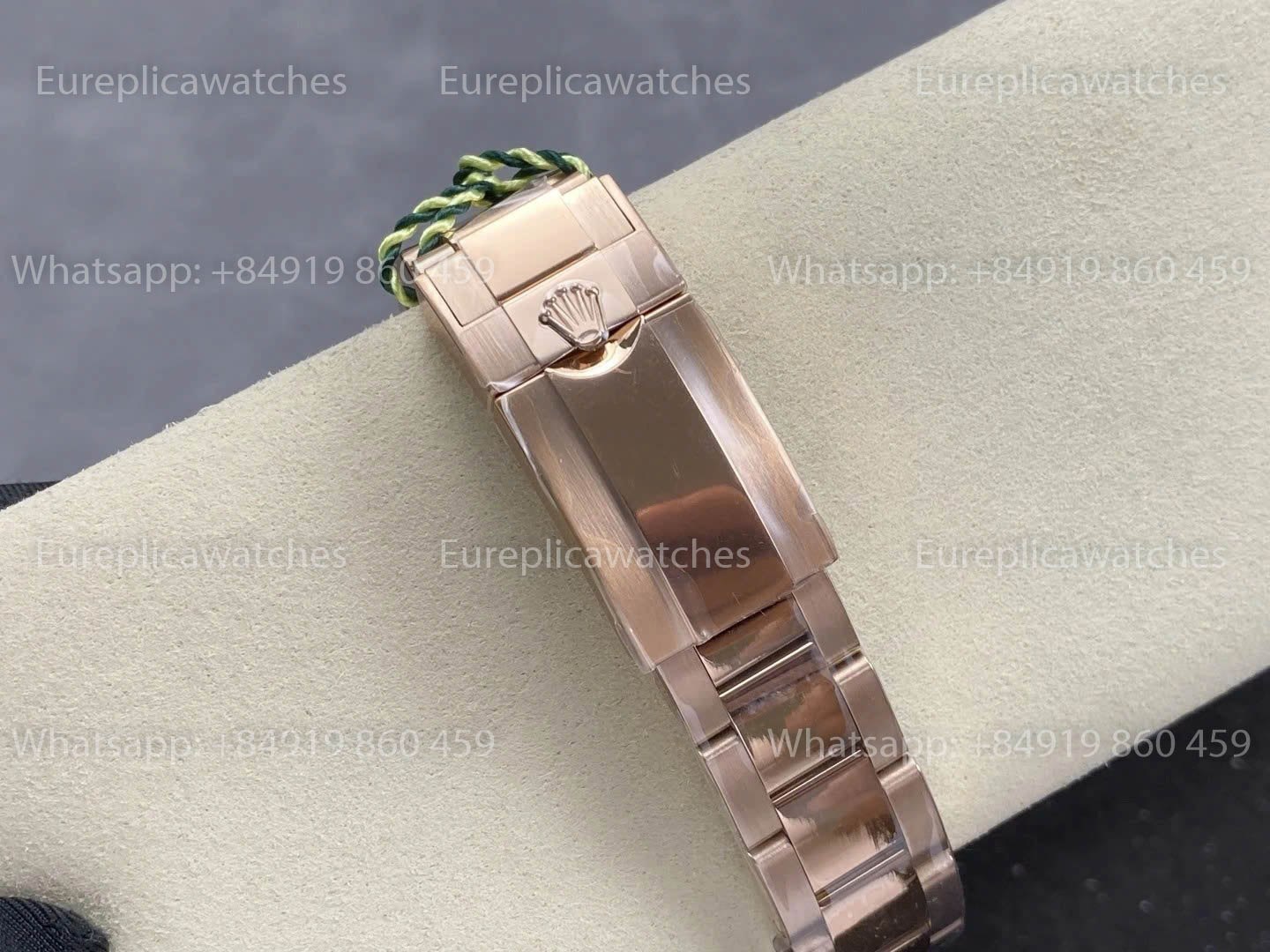 The black dial is complemented by a tachymeter bezel, staying true to the Daytona’s sporty aesthetic. The bracelet continues the premium build with matching 18k rose-gold-plated 1:1 replicated solid 904L stainless steel, also reinforced with tungsten for added heft, and is secured by a deployant clasp. Water resistance exceeds 50 meters, adding everyday durability.