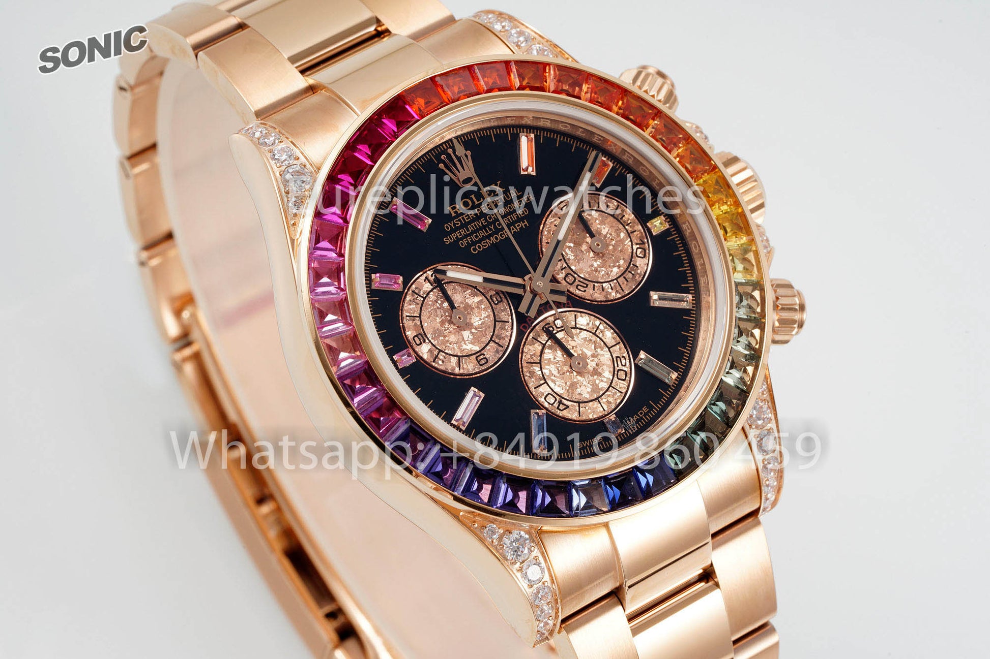 Rolex Daytona Rainbow Cadran Diamant Or Rose 40 mm 1:1 Super Clone Sonic Factory