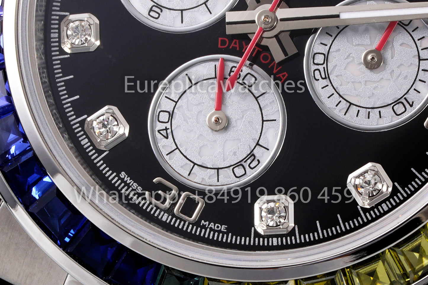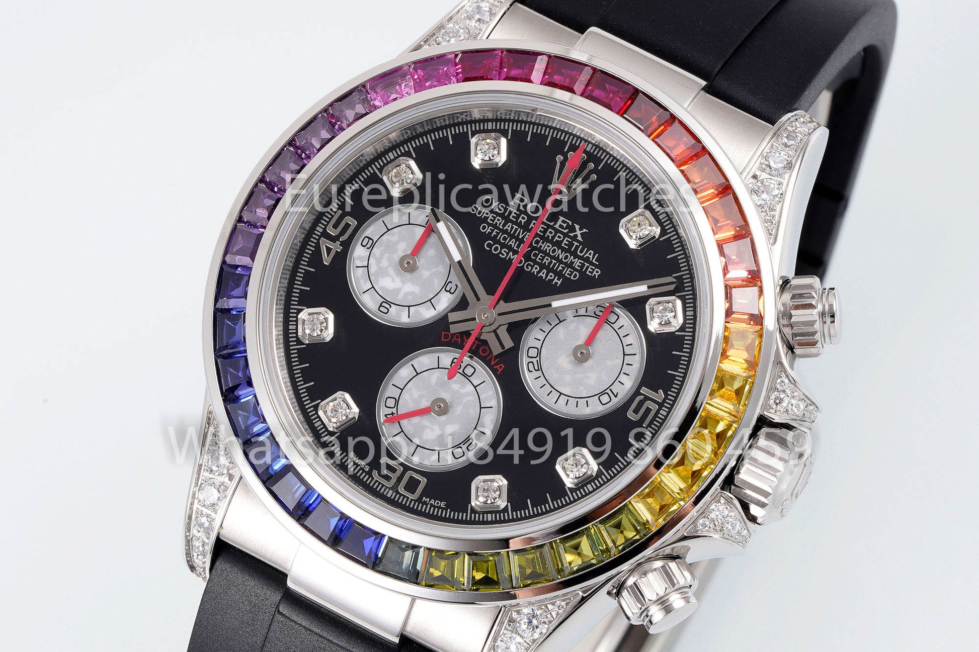 Rolex Daytona Rainbow Cadran Noir 40mm 1:1 Meilleur Clone EF Factory Acier Inoxydable Argent