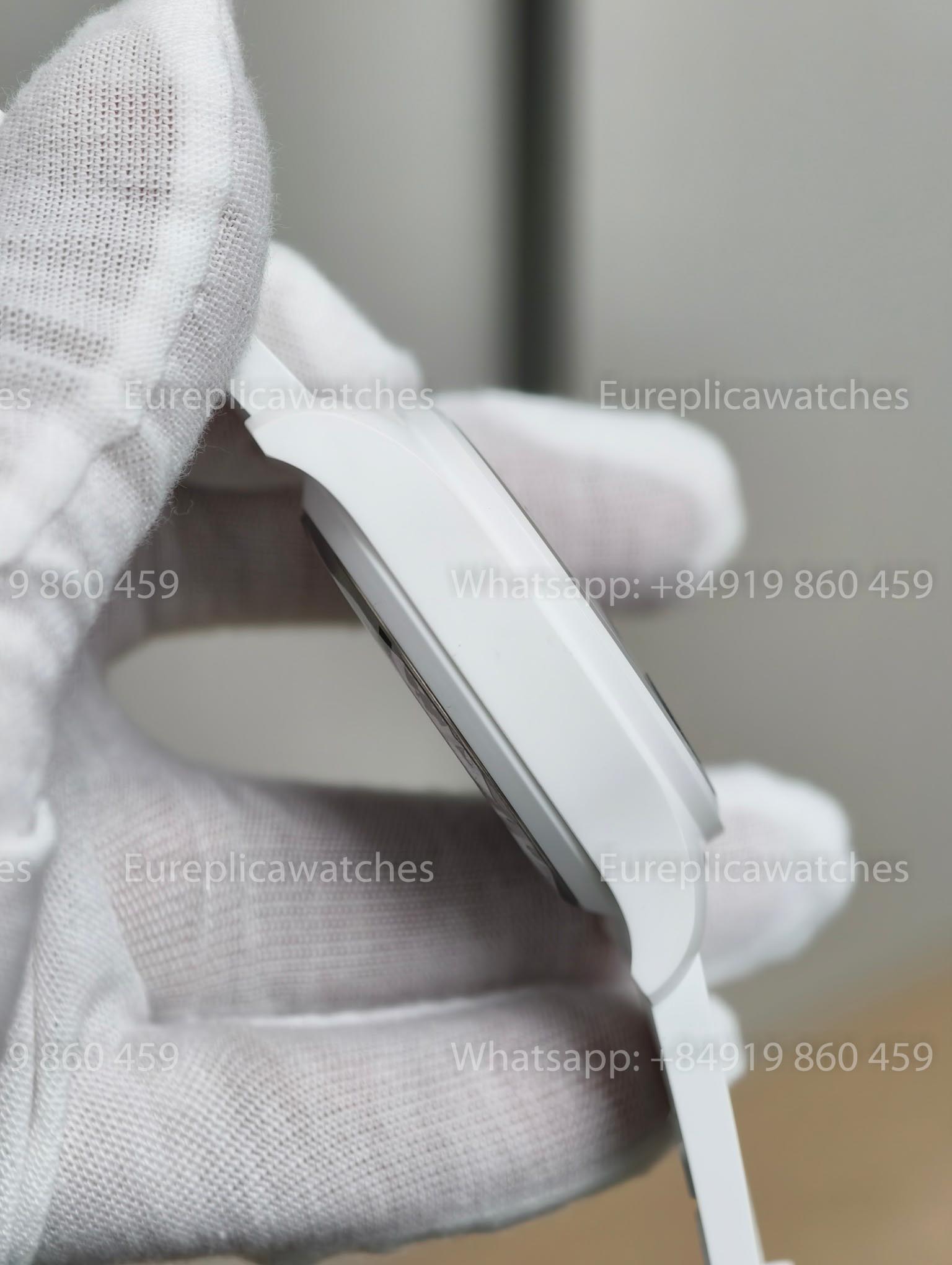 The 41mm case is made from high-quality black ceramic, offering excellent scratch resistance, lightweight comfort, and a stealthy matte finish. The overall case structure, including the lugs and pushers, is accurately replicated to match the original proportions.