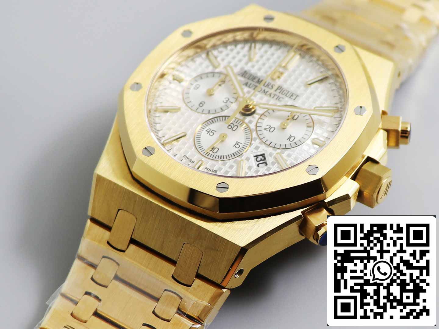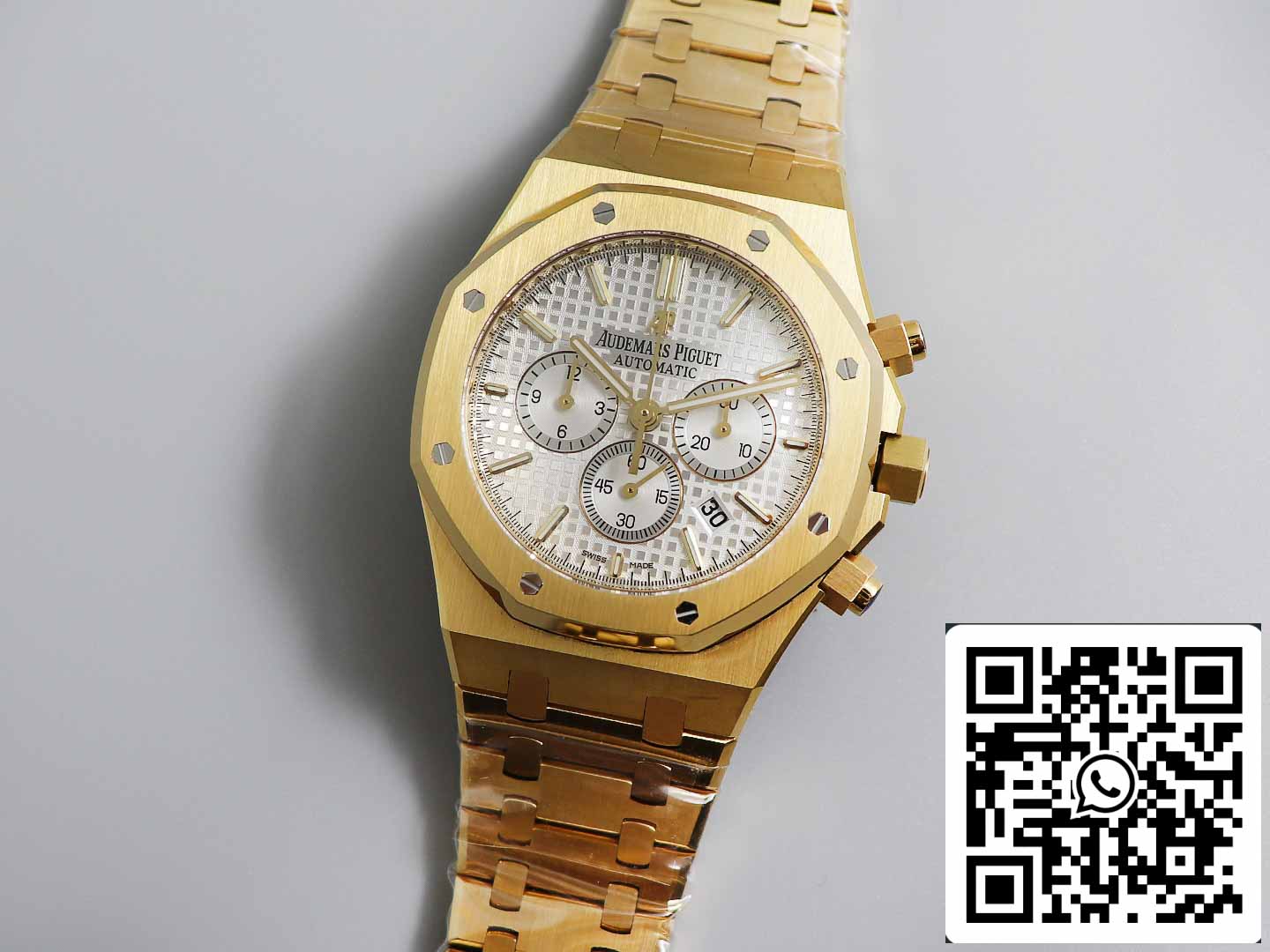 - The Royal Oak's "tapered" link structure features links of varying sizes, each meticulously hand-finished and assembled. The clasp has finally achieved the same level of precision as the original, with gray luminous font that shines brilliantly.