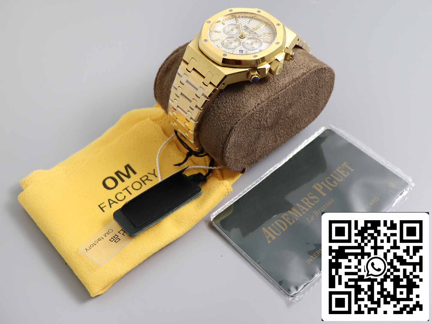 - The Royal Oak dial is decorated with the iconic "tapisserie" grid pattern, which, though seemingly simple, is astonishing in its detail. The dial undergoes processes including lathe work, engraving, polishing, coloring, baking, scale riveting, and luminous filling—remarkably intricate! Same functionality, same quality, different price. Limited release, and as always, OM products are guaranteed to be premium.