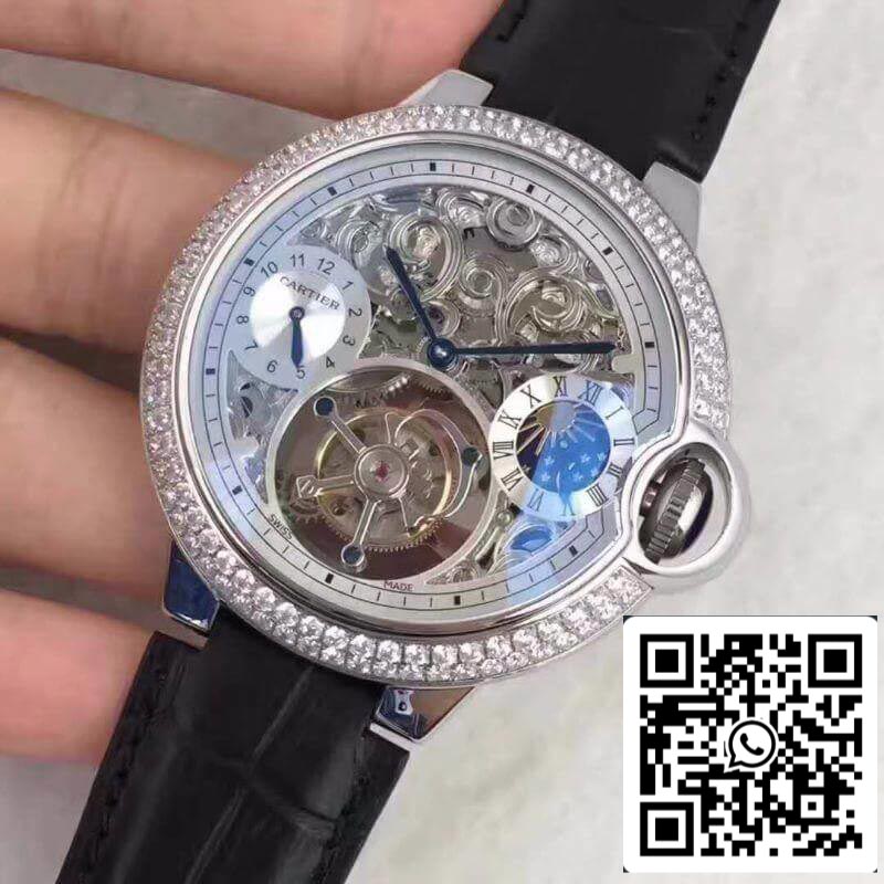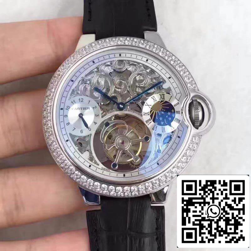 Ballon Bleu De Cartier Tourbillon 1:1 Best Edition Swiss Tourbillon Diamonds bezel Black Leather Strap