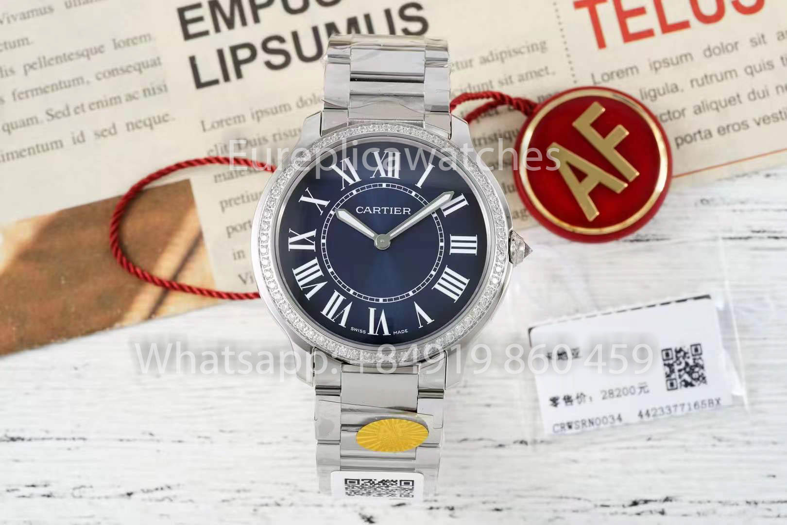 Cartier Ronde Must De Cartier 36mm Custom Diamond 1:1 Best Clone AF Factory Blue Dial