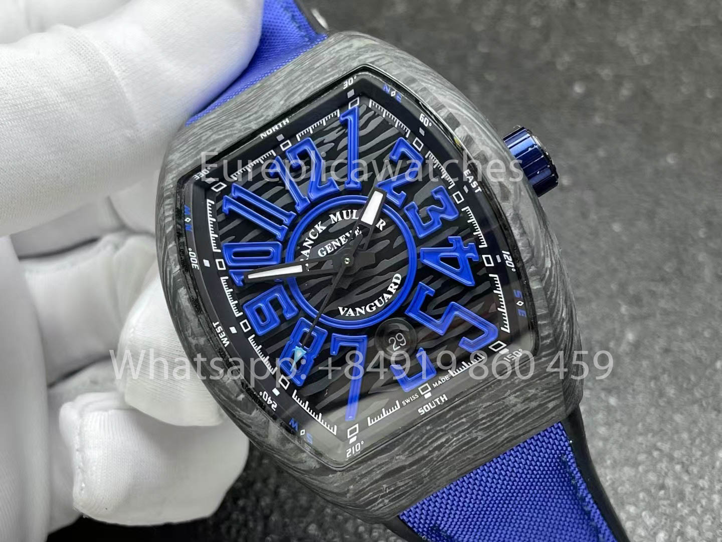 Franck Muller Vanguard V45 Carbon Fiber 1:1 Best Clone Blue Strap