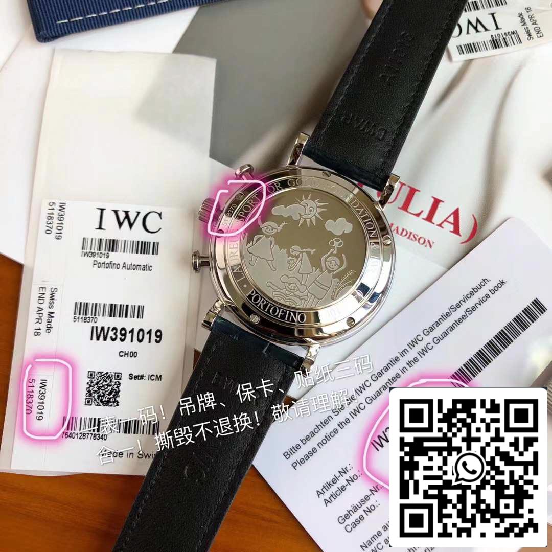 The famous IWC Portofino mechanical six-hand chronograph, the Gentleman in the watch industry, always exists like a gentleman, with a simple style, original Swiss Eta-7750 automatic mechanical movement (also named 79320 by IWC), and is waterproof Dazzling sapphire glass, black American alligator leather strap, most men’s ideal watch: a clean, thin, low-key and meaningful dial. The formal 42mm watch has a rhodium-plated willow leaf needle shape that you will never get tired of. What we got is the 150th anniversary limited edition at the 2018 Geneva Watch Fair! It’s hard to find anything at the counters! The warranty card, hangtag and outer packaging are all labeled with the model number and watch identification number. I am really happy for you to get such a perfect product! Unrivaled value for money, exclusive supply.