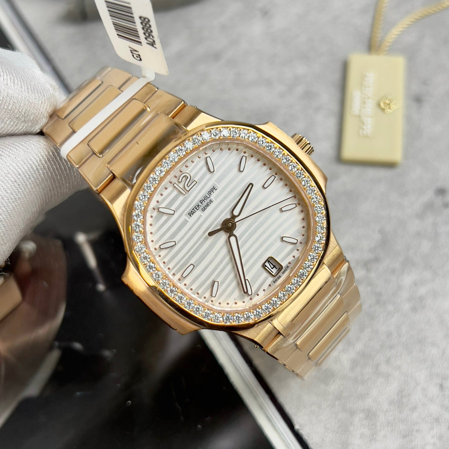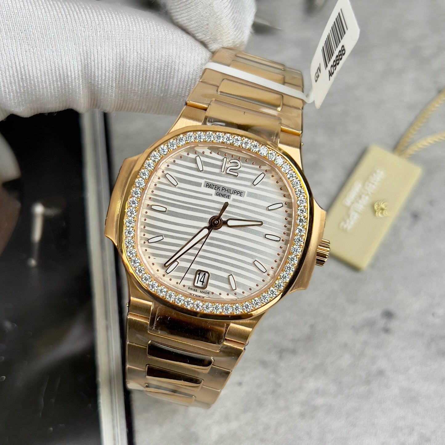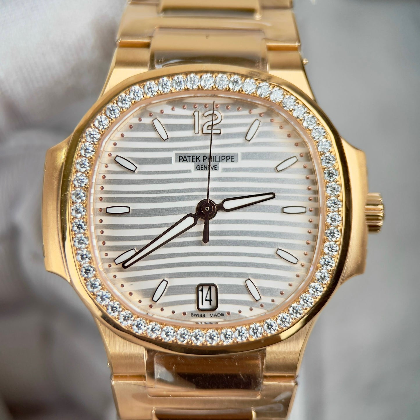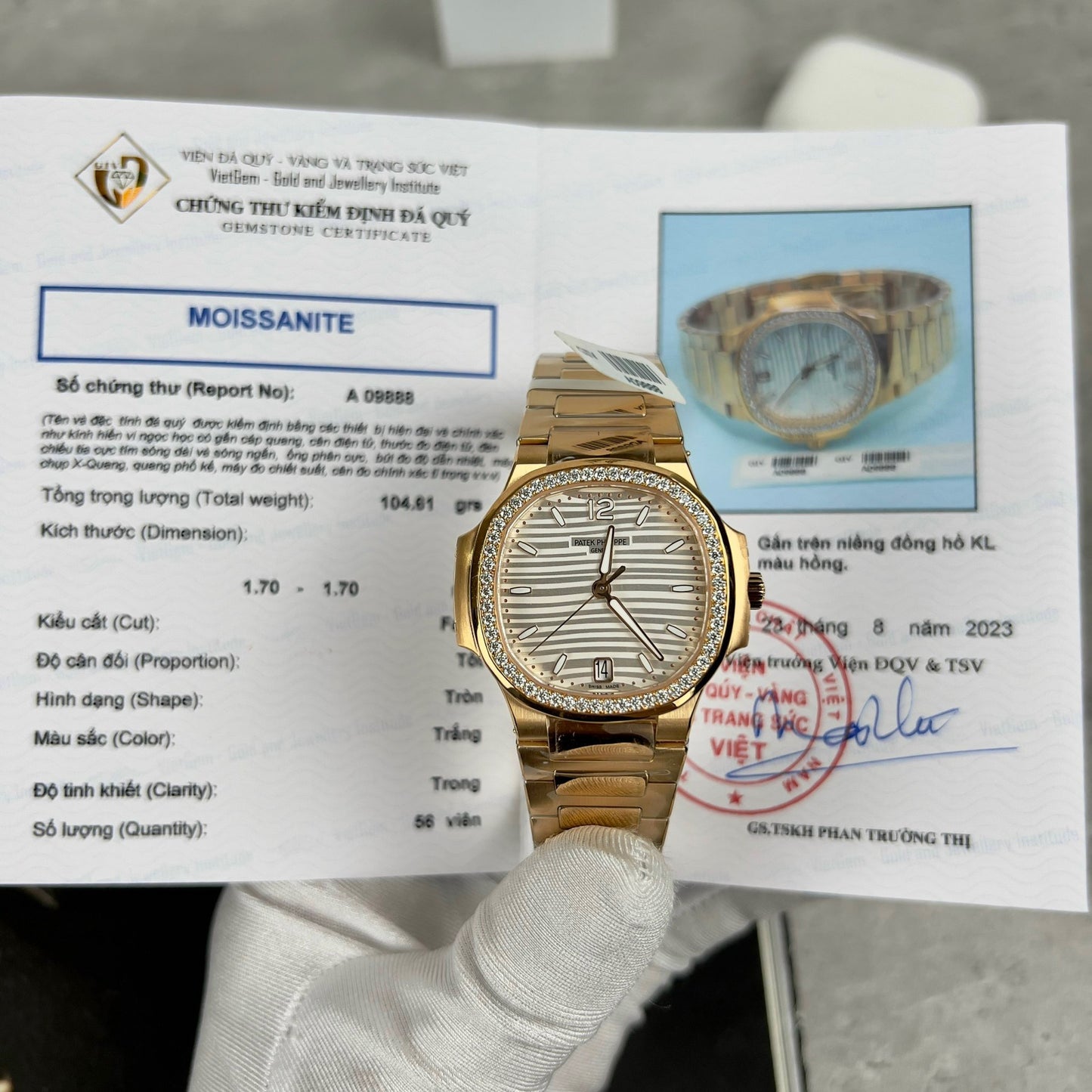 Patek Philippe Nautilus 7118/1R-010 18k gold filled with white dial custom Moissanite stone