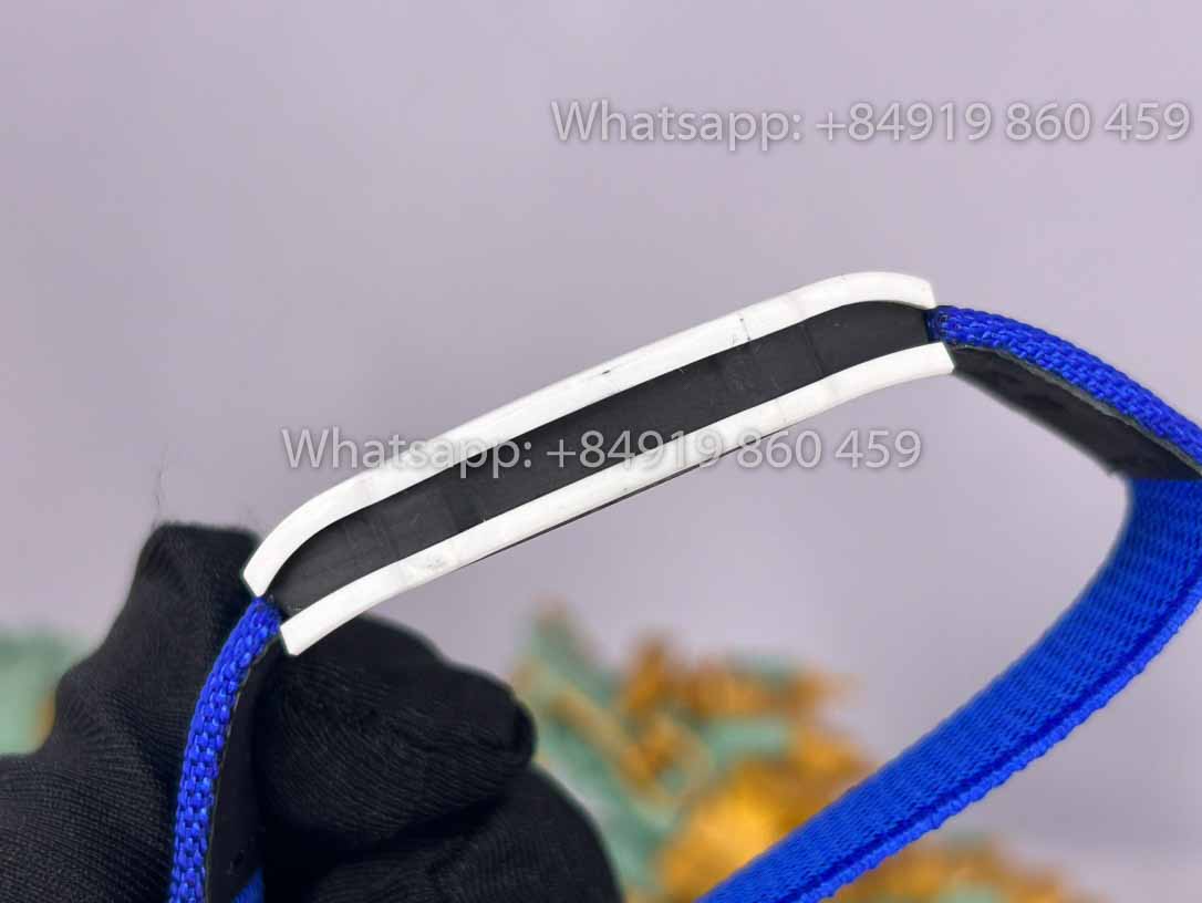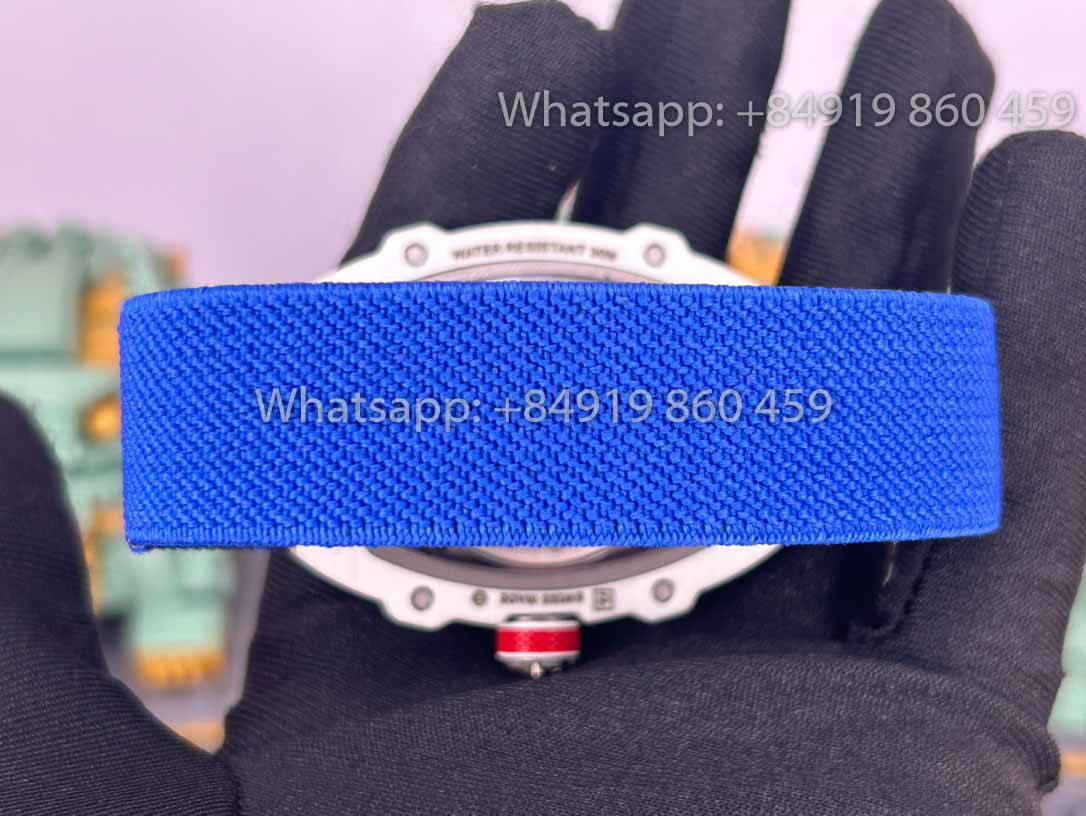 This is the most customized version of the RM67-02 on the market. All the materials used are of the highest quality, making it resemble the authentic version as closely as possible, while the price is extremely affordable, only a few thousand USD. The weight ranges from 36 to 37 grams, compared to the original's 32 grams, but it is still perfectly 1:1 in size with the original. The Richard Mille watch designed for athletics, following tennis and Formula 1 racing.