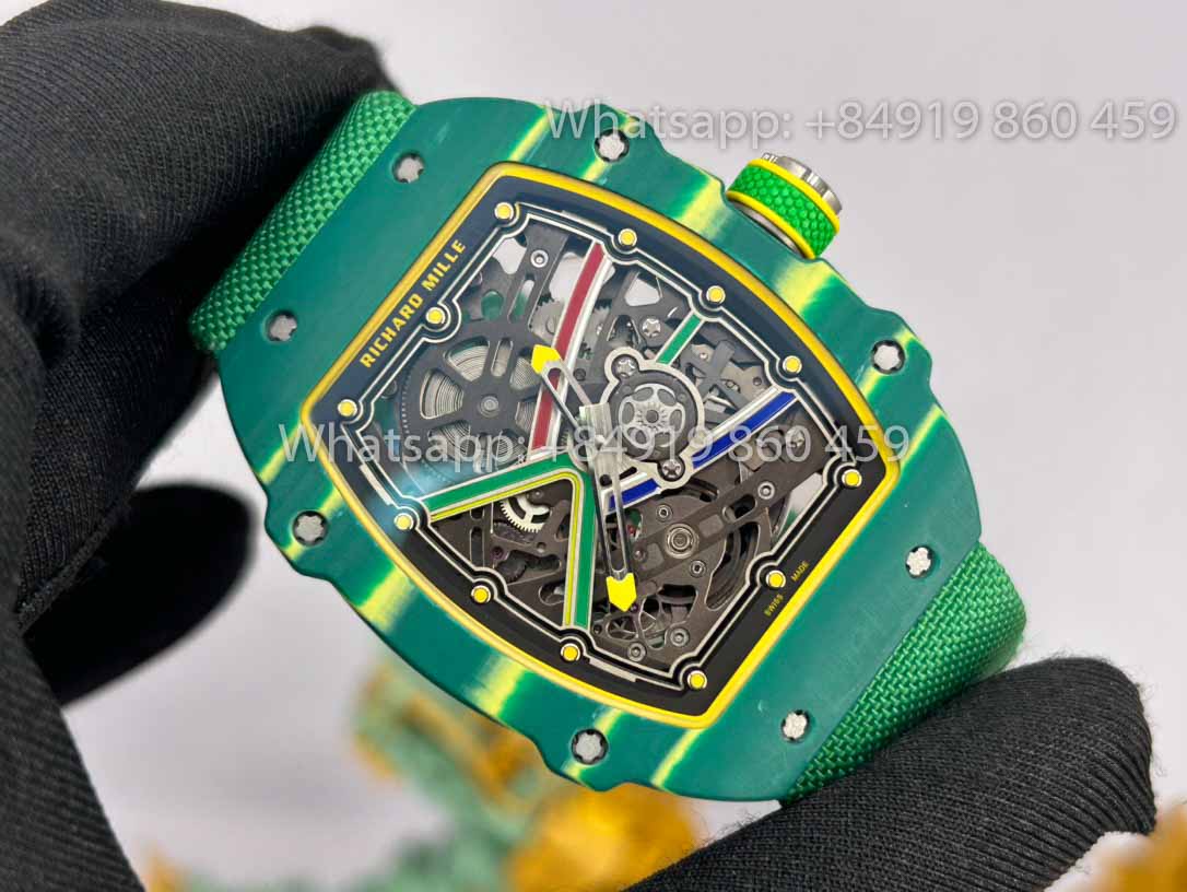 This is the most customized version of the RM67-02 on the market. All the materials used are of the highest quality, making it resemble the authentic version as closely as possible, while the price is extremely affordable, only a few thousand USD. The weight ranges from 36 to 37 grams, compared to the original's 32 grams, but it is still perfectly 1:1 in size with the original. The Richard Mille watch designed for athletics, following tennis and Formula 1 racing.