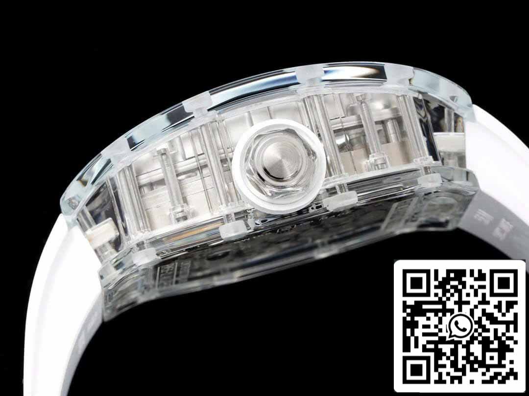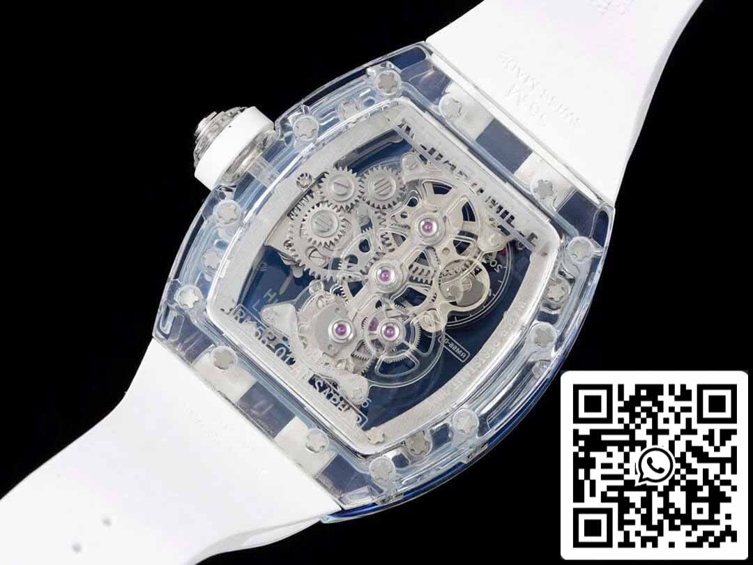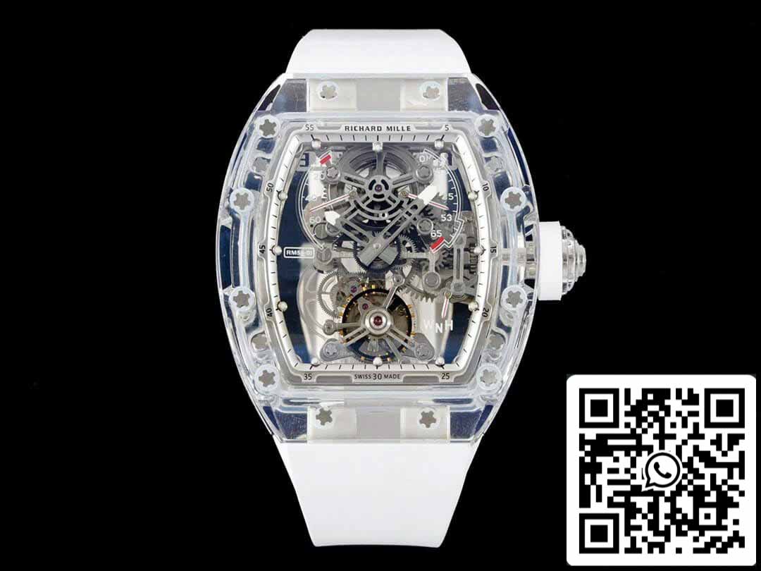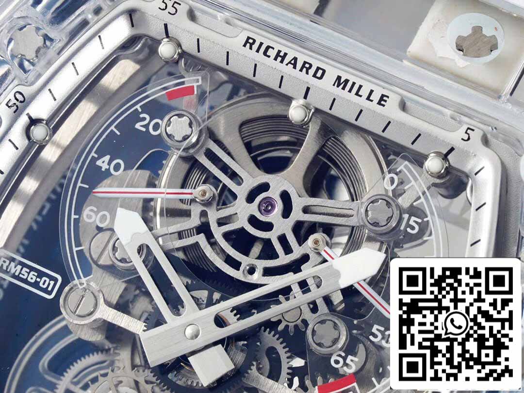 The RM 56-01 is nothing short of a horological masterpiece — a crystalline marvel that exemplifies the pinnacle of watchmaking craftsmanship. Crafted entirely from sapphire crystal, every angle of this timepiece offers a transparent, immaculate view — leaving no room for error, and no detail hidden from the eye.