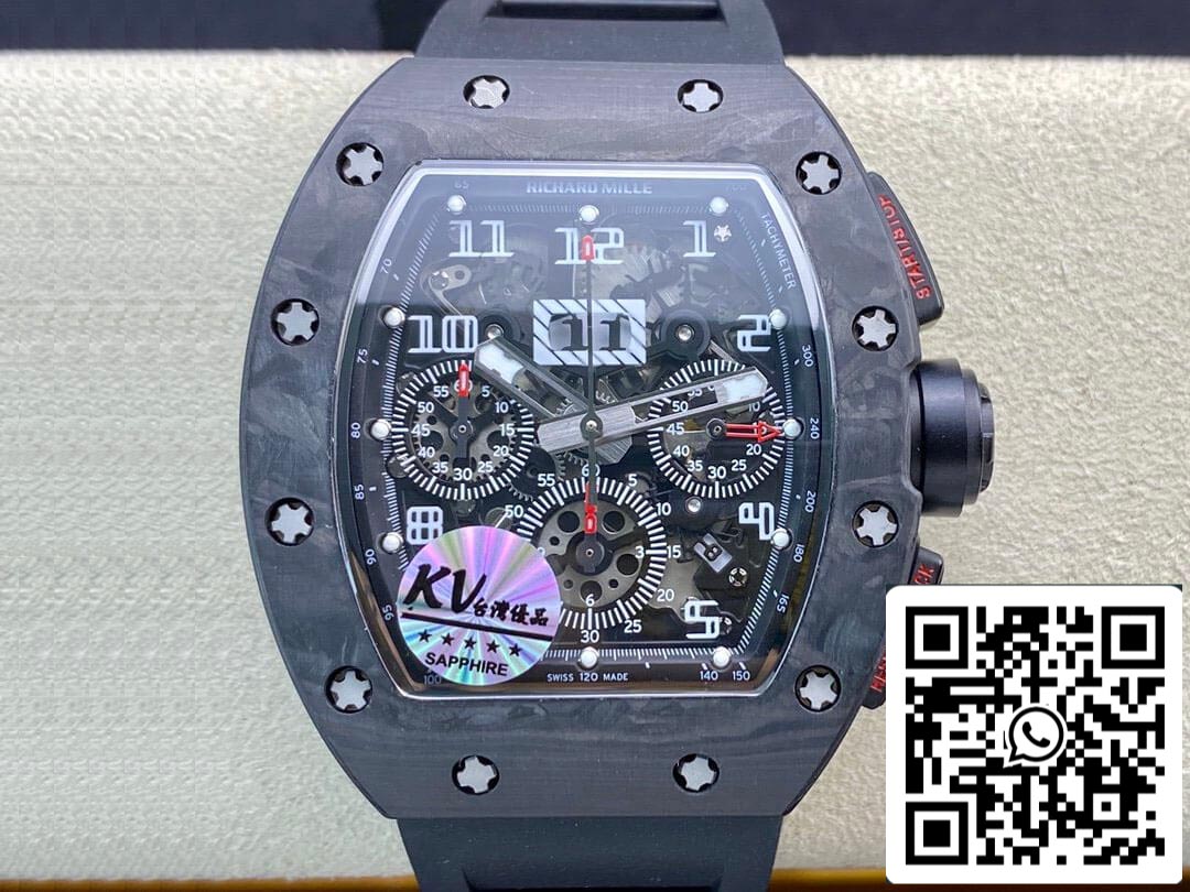 Richard Mille RM011 1:1 Best Edition KV Factory Carbon Fiber Black Rubber Strap