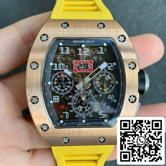 Richard Mille RM011 1:1 Best Edition KV Factory Rose Gold Rubber Strap