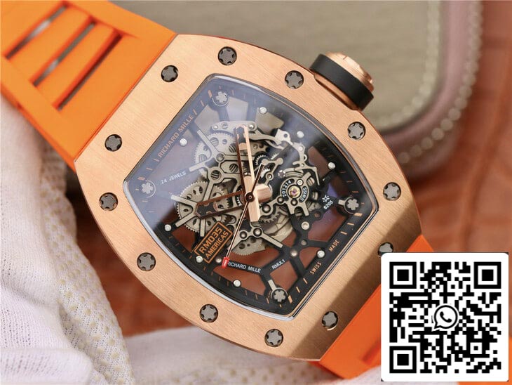 Launched in 2011, the RM 035 is the first Richard Mille Chronofiable® certified timepiece, representing a new milestone in the quest for long-lasting performance under extreme conditions.We bring the best copies on the market, the most similar to the original, and the most perfect.