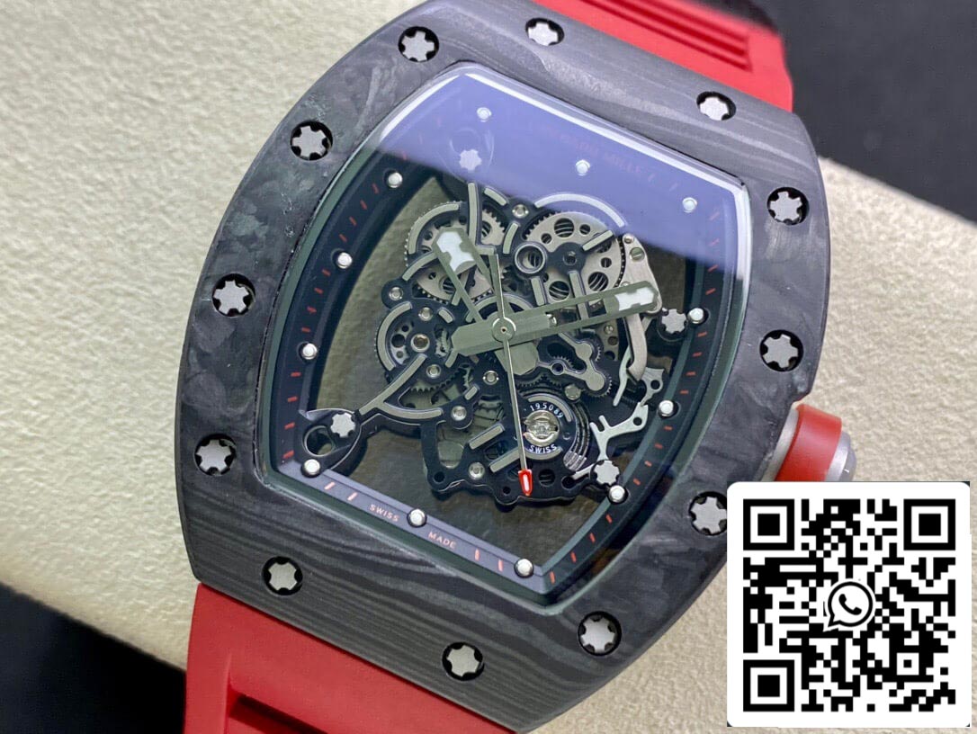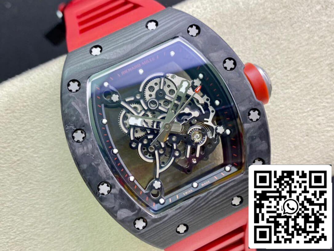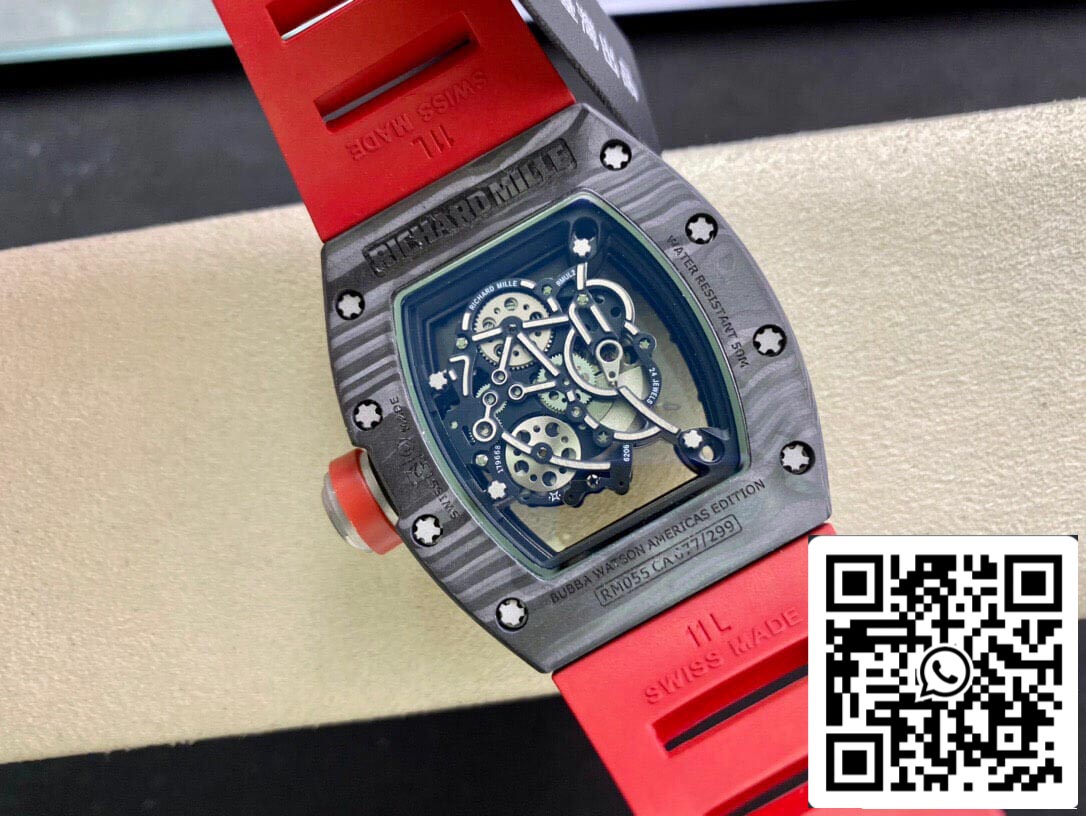 Richard Mille RM055 1:1 Best Edition KV Factory V2 Carbon Fiber Red Strap
