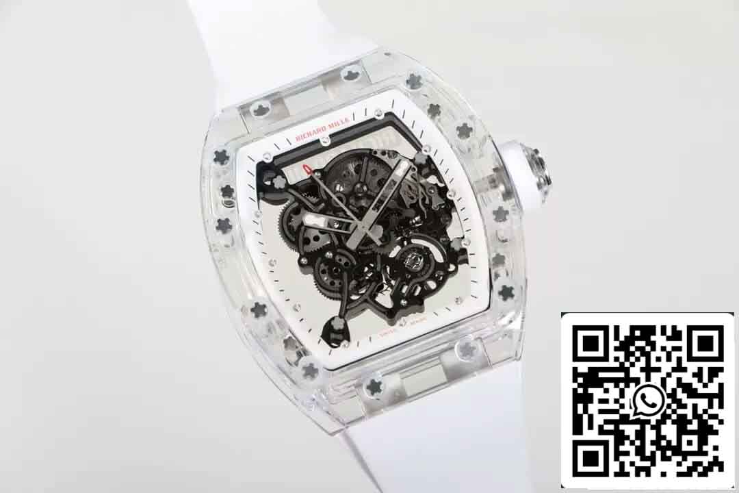 The Replica version of RM055 with a transparent design using very high-quality ceramic, in addition to a super strong titanium frame, soft rubber strap, and sturdy buckle will definitely make you satisfied.. If you are looking for the most perfect version, with the neat movement, the heart moving like the original, these are the ones you are looking for.