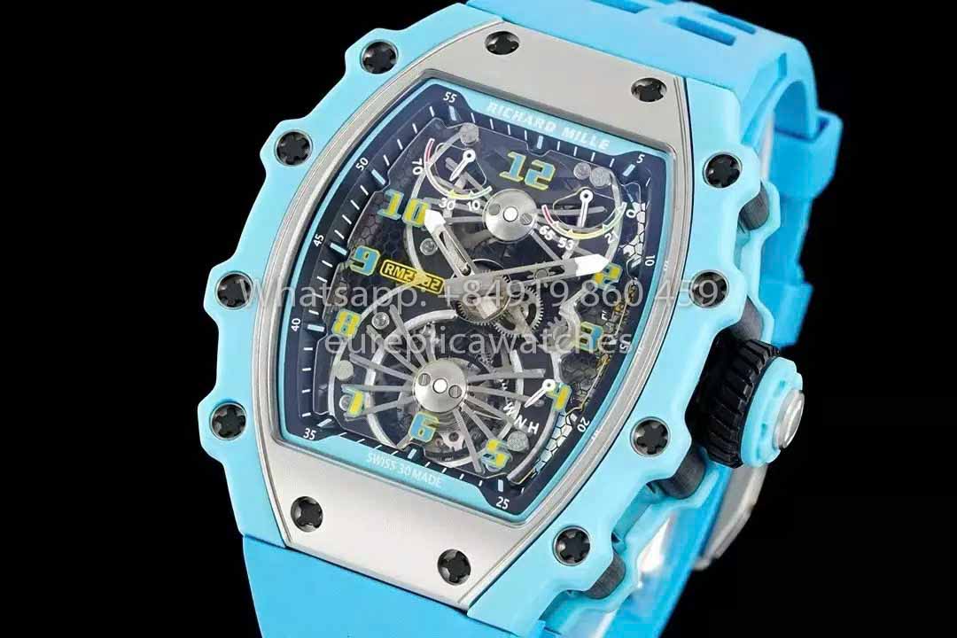 Richard Mille RM21-01 Blue Tiffany Tourbillon Watch 1:1 best Clone RM Factory