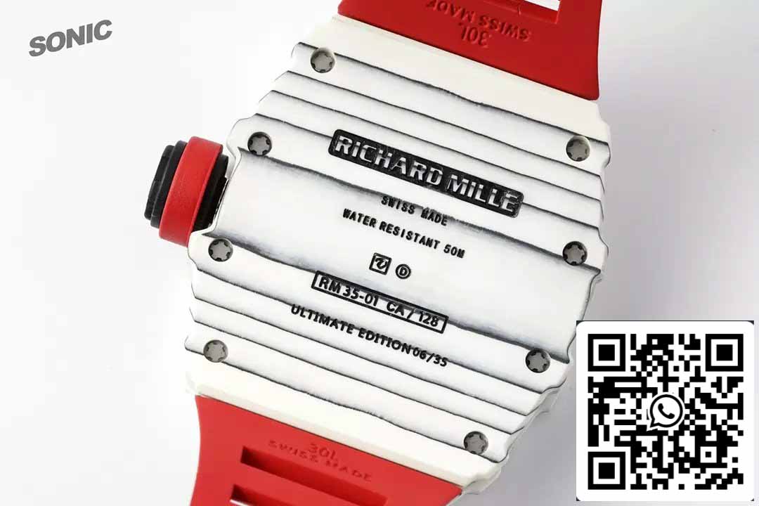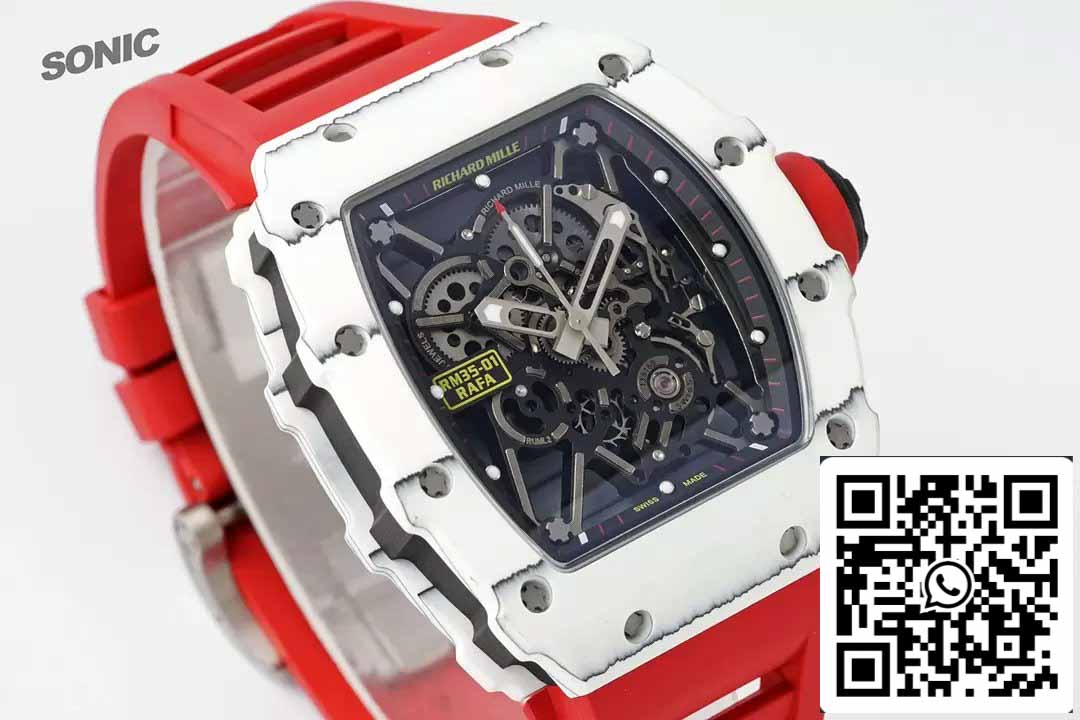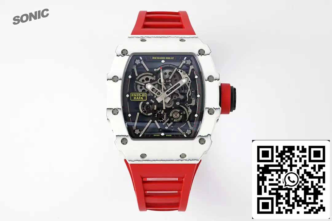 Richard Mille RM35-01 Sonic Factory 1:1 Best Edition White Carbon NTPT Red Rubber Strap