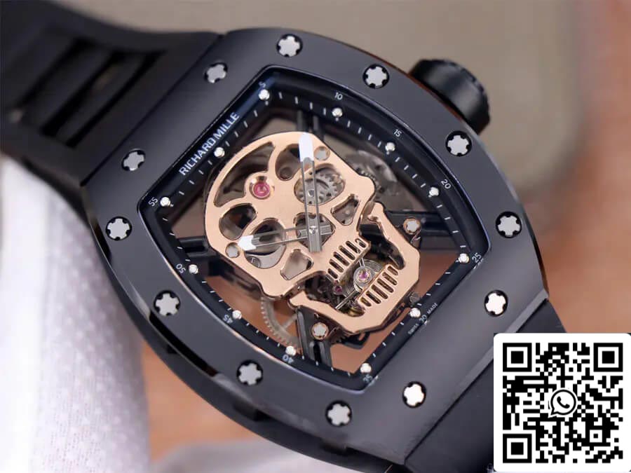 Richard Mille RM52-01 Tourbillon 1:1 Best Edition JB Factory Rose Gold Skull Dial