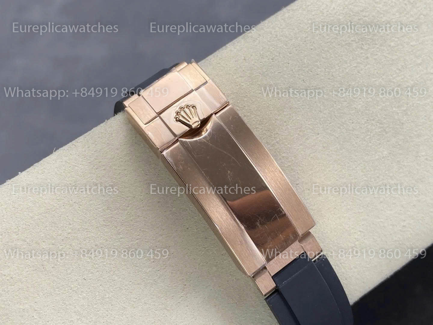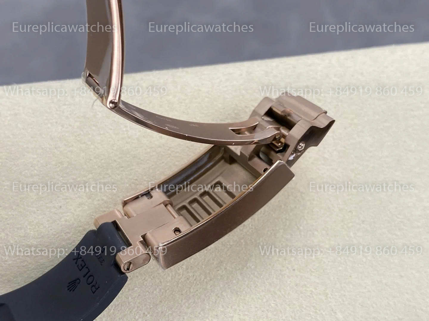 The watch is completed with a black Oysterflex rubber strap, paired with a deployant Rolex-style flip-lock clasp for secure and comfortable wear.