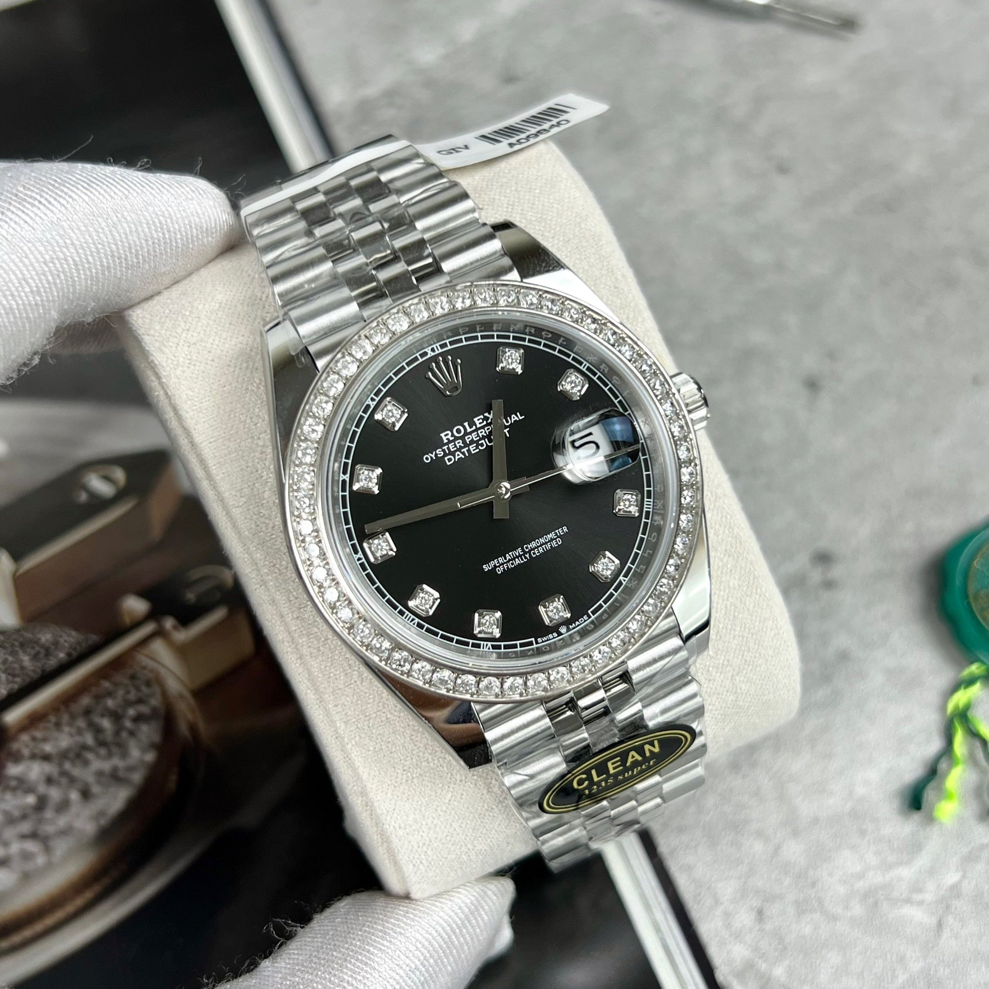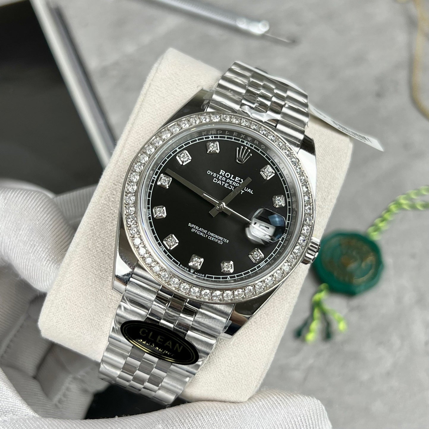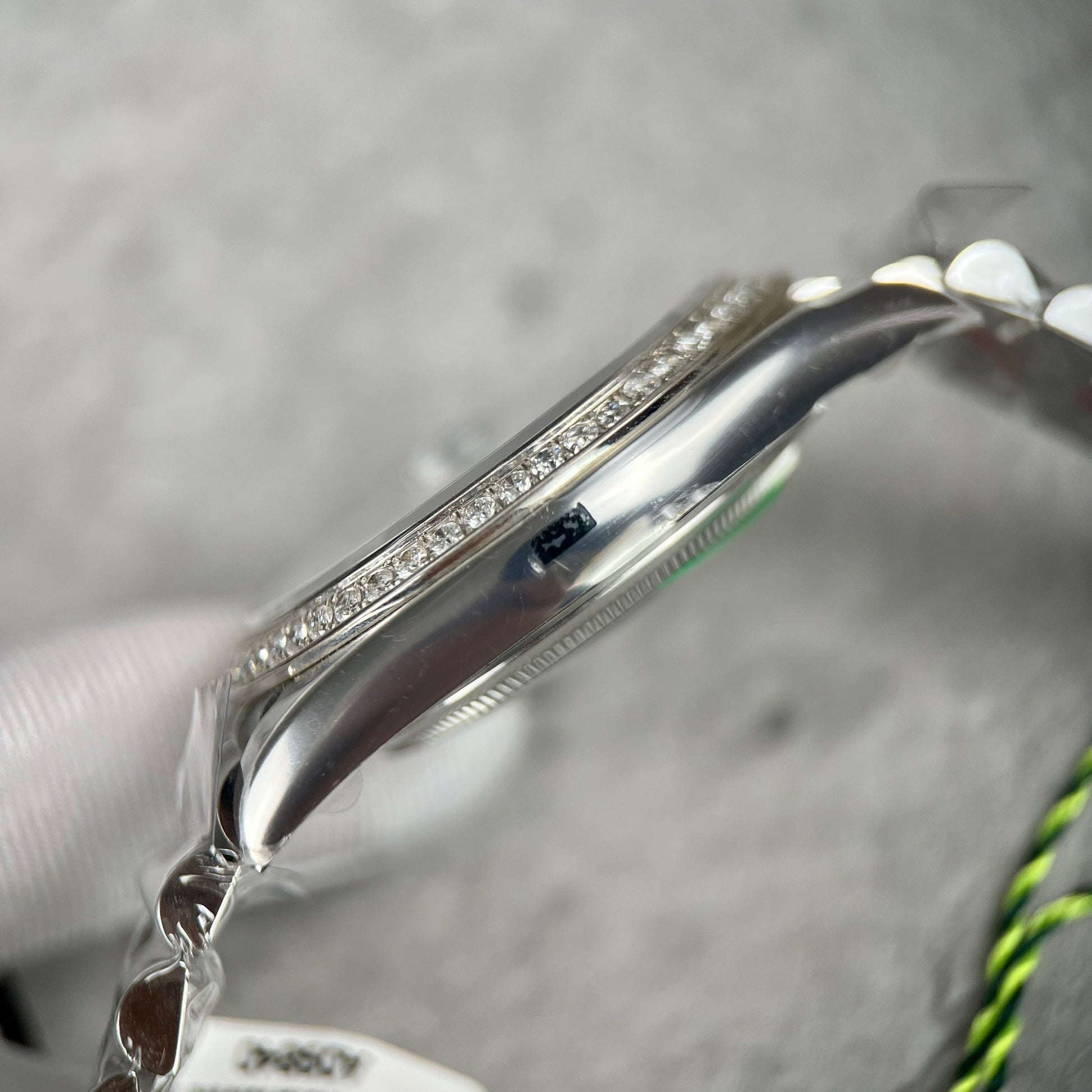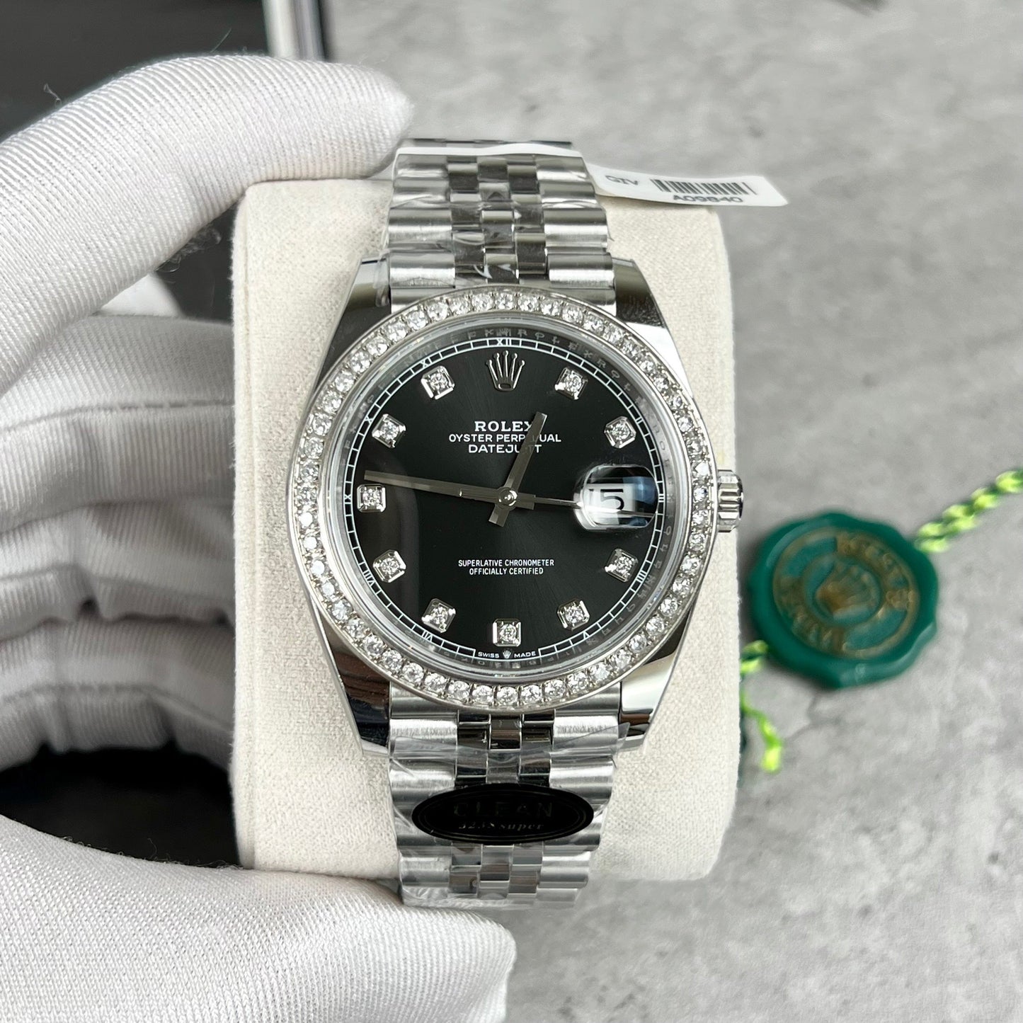 This is the best Rolex datejust currently produced by Clean Factory. The dial is clear with reflected light rays, the font is clear, and the luminescent is super bright. The stone on the watch is also a beautiful and bright diamond-like moissanite. 904L steel is also a lighter steel than other Factory. Scratch resistant sapphire glass. Custom bezel with Moissanite stone