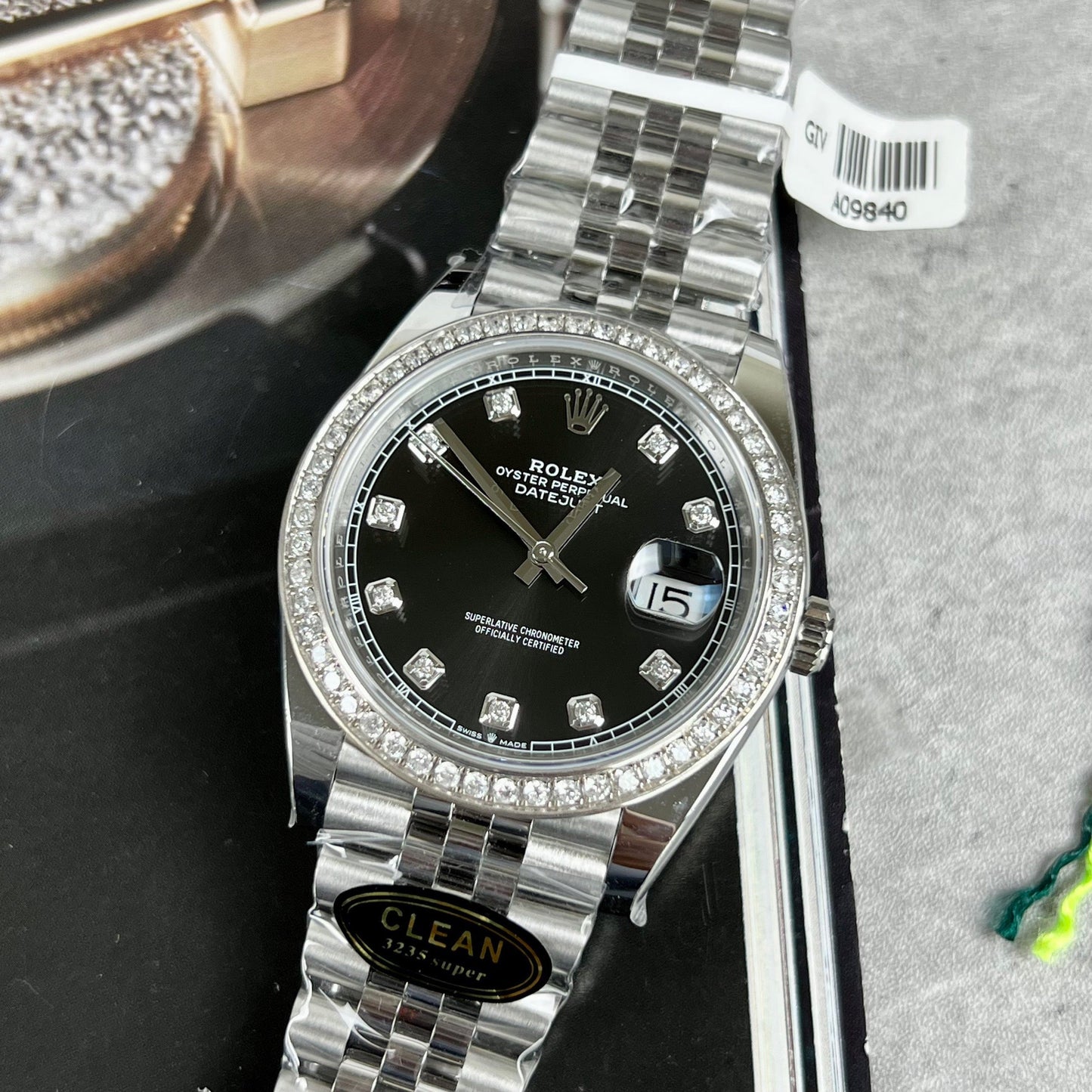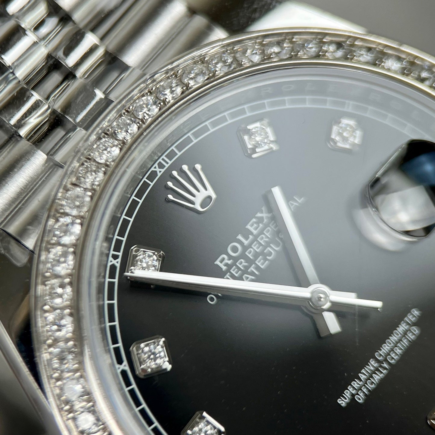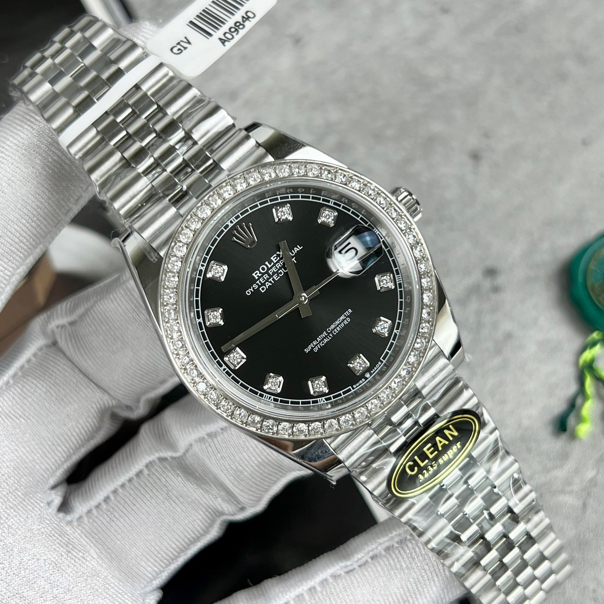 This is the best Rolex datejust currently produced by Clean Factory. The dial is clear with reflected light rays, the font is clear, and the luminescent is super bright. The stone on the watch is also a beautiful and bright diamond-like moissanite. 904L steel is also a lighter steel than other Factory. Scratch resistant sapphire glass. Custom bezel with Moissanite stone