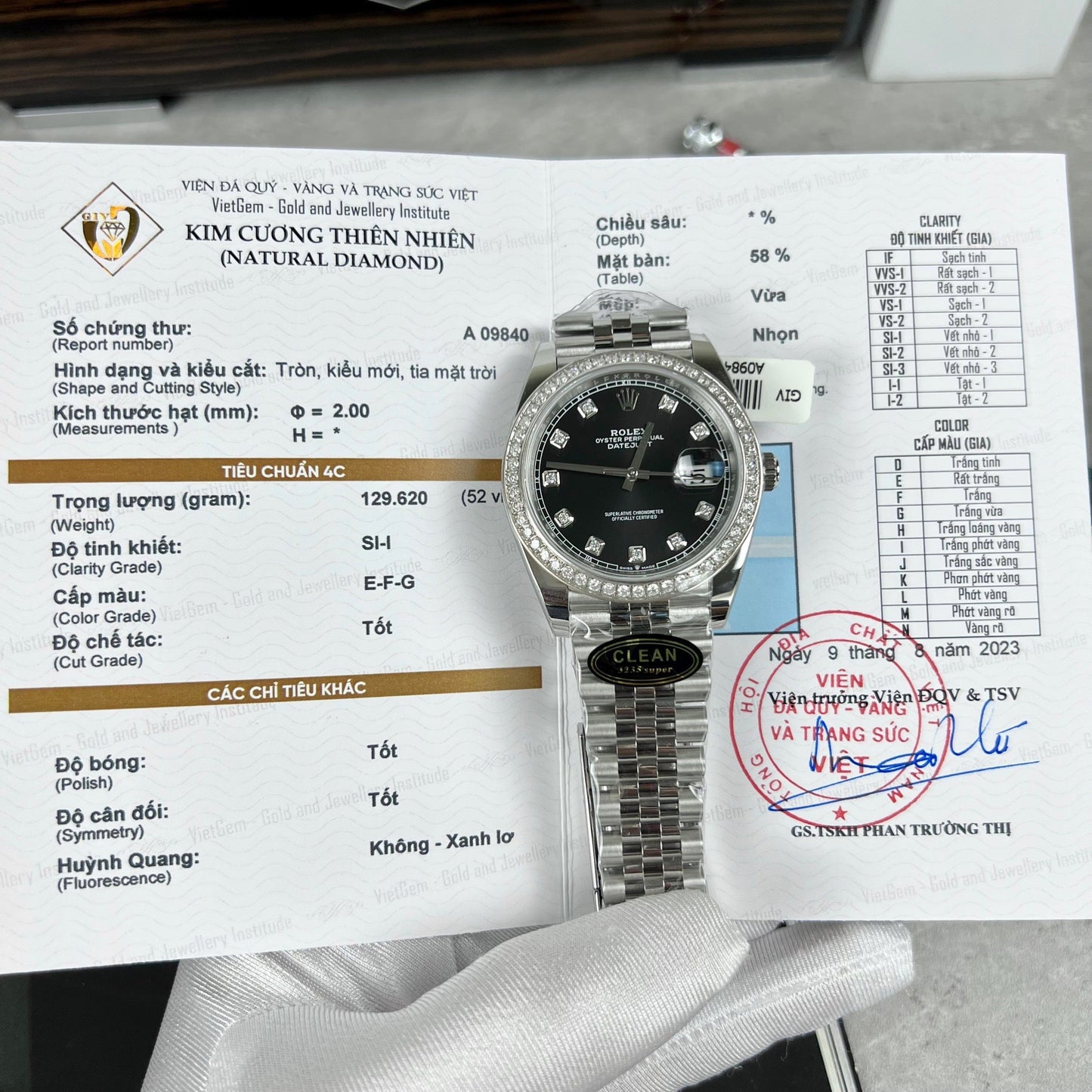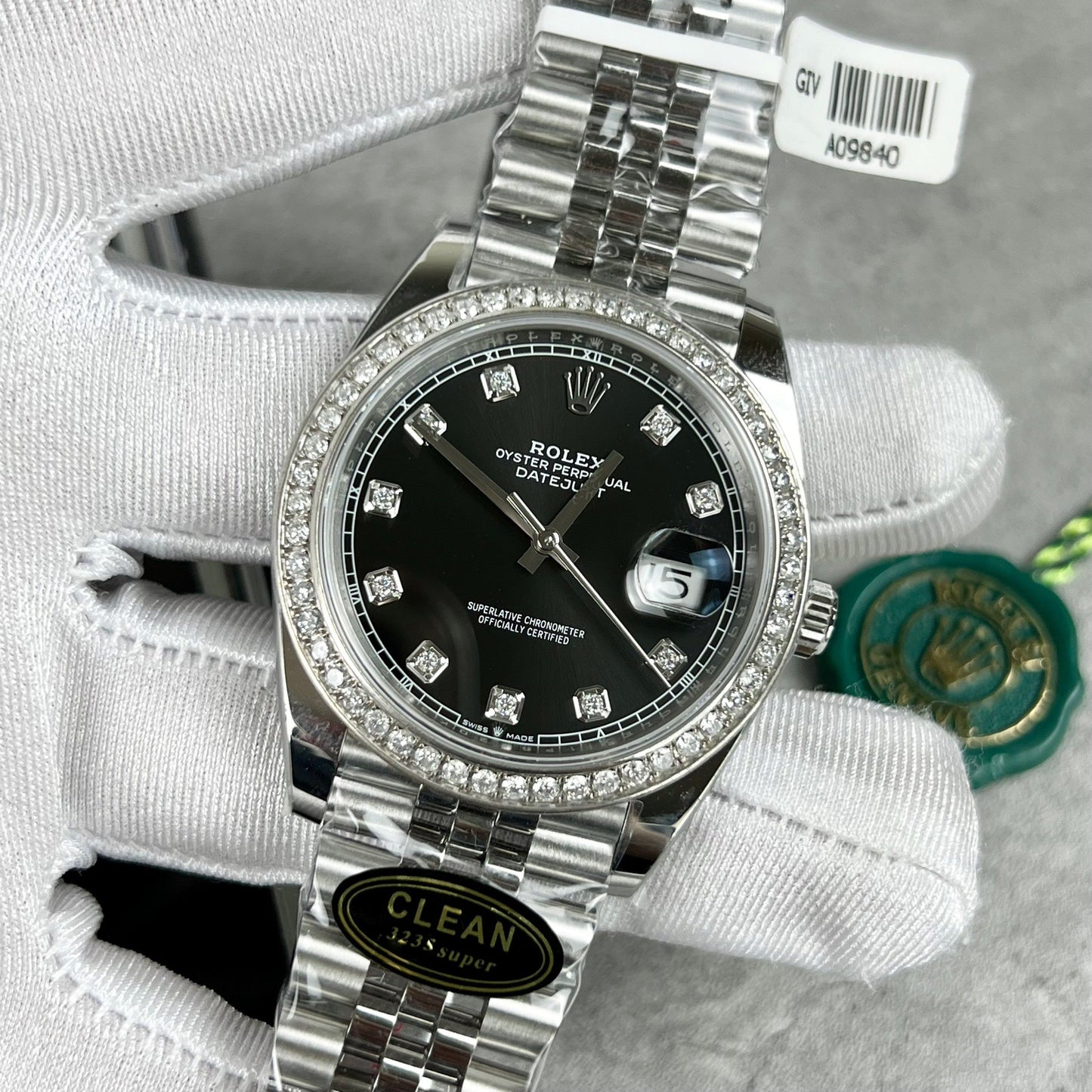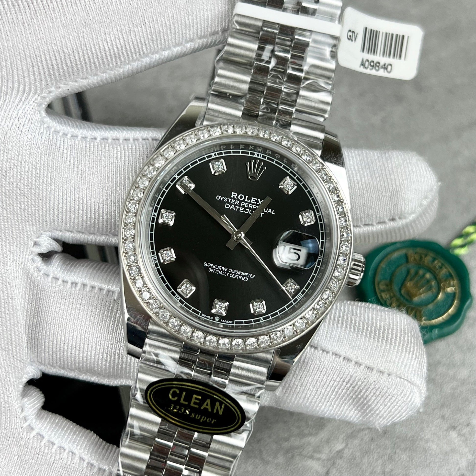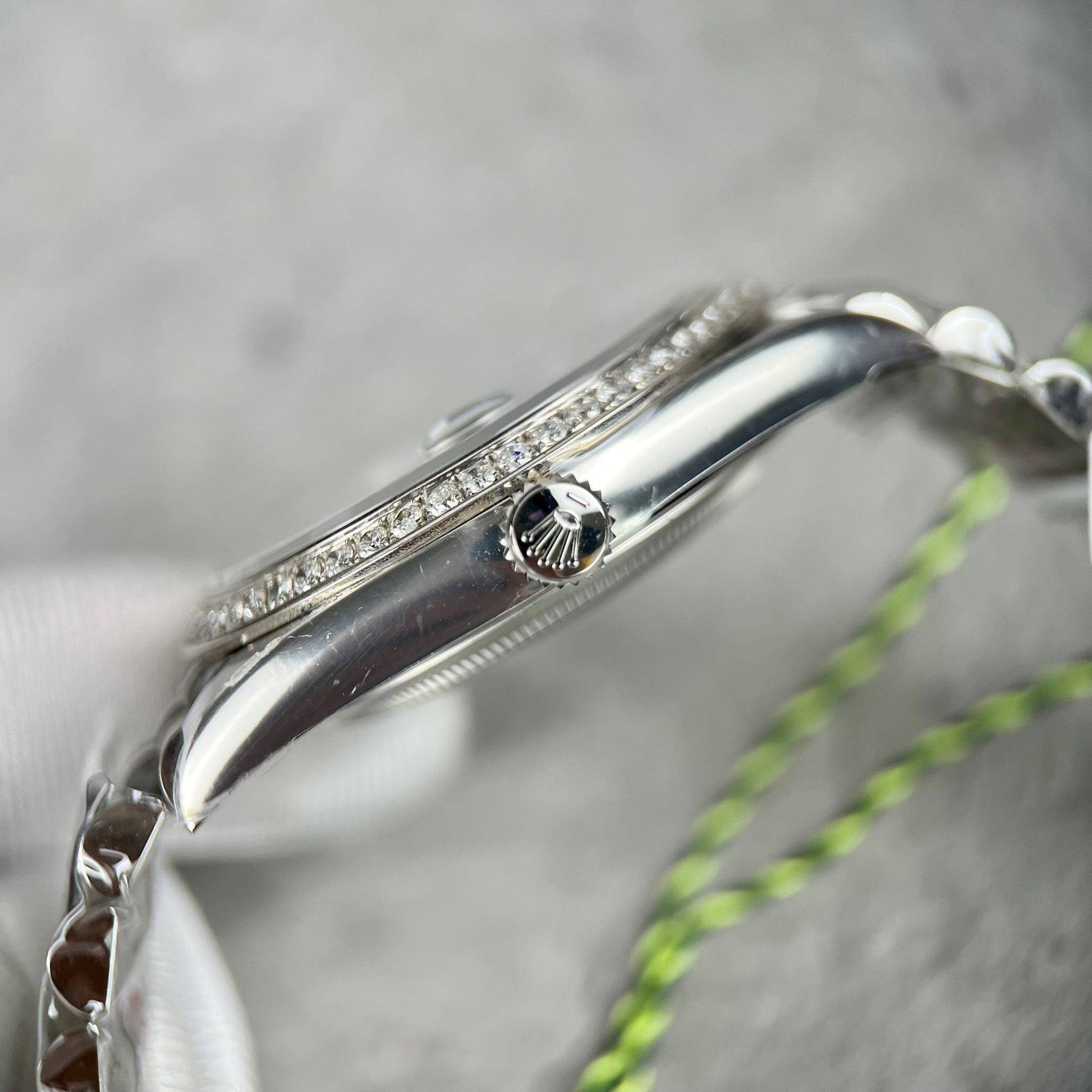 This is the best Rolex datejust currently produced by Clean Factory. The dial is clear with reflected light rays, the font is clear, and the luminescent is super bright. The stone on the watch is also a beautiful and bright diamond-like moissanite. 904L steel is also a lighter steel than other Factory. Scratch resistant sapphire glass. Custom bezel with Moissanite stone