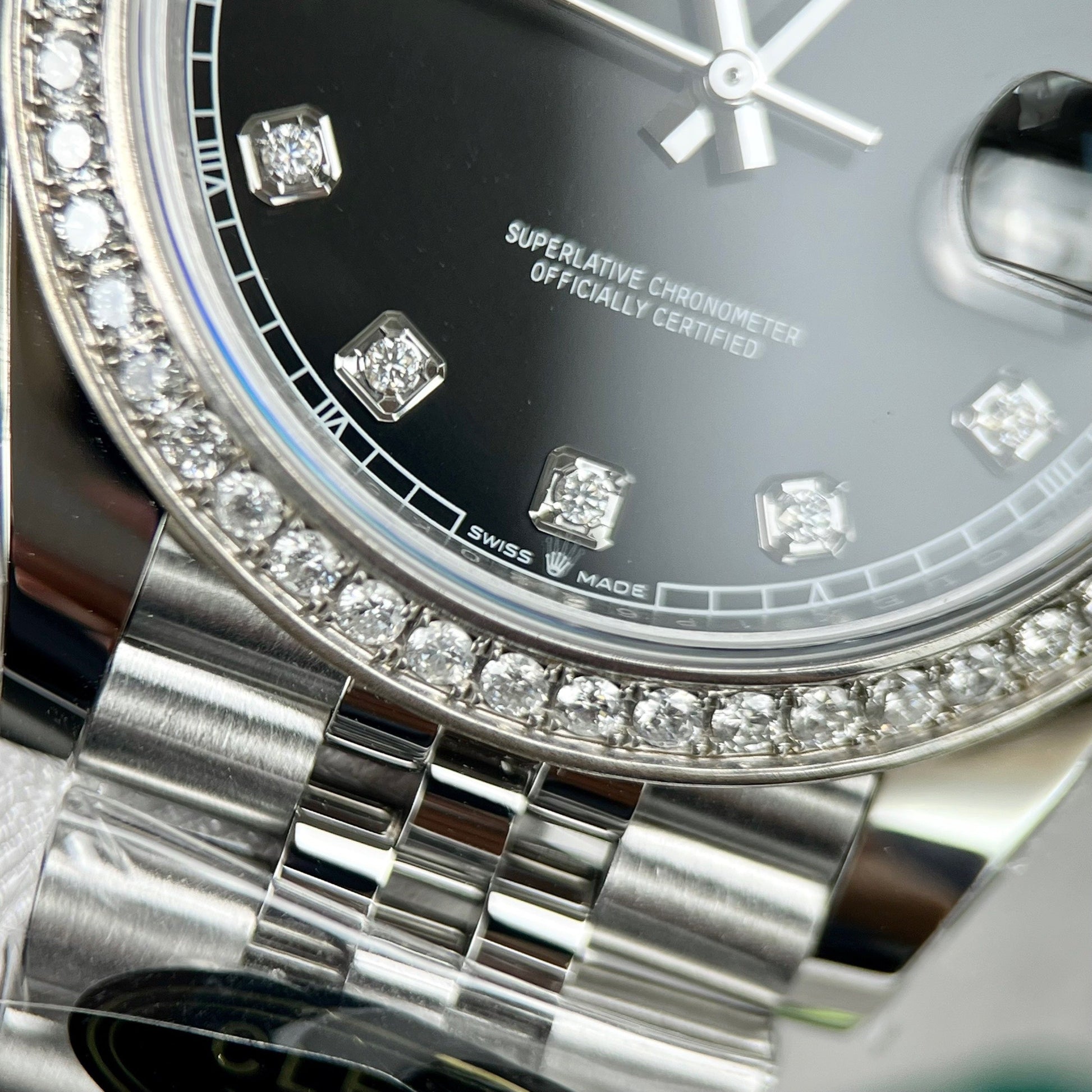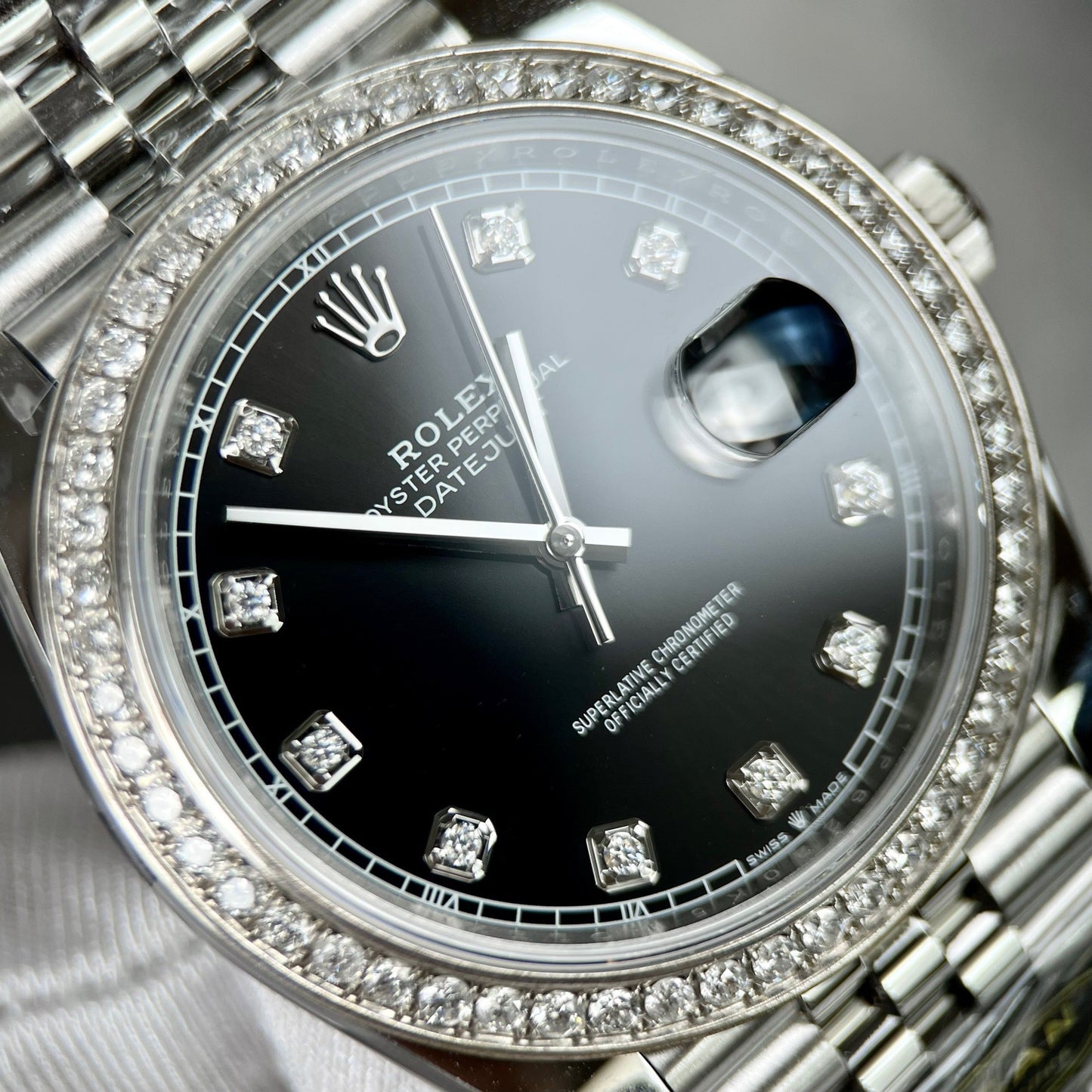 Rolex Datejust 41 Black Diamond Men's Watch 126334-0012 custom moissanite
