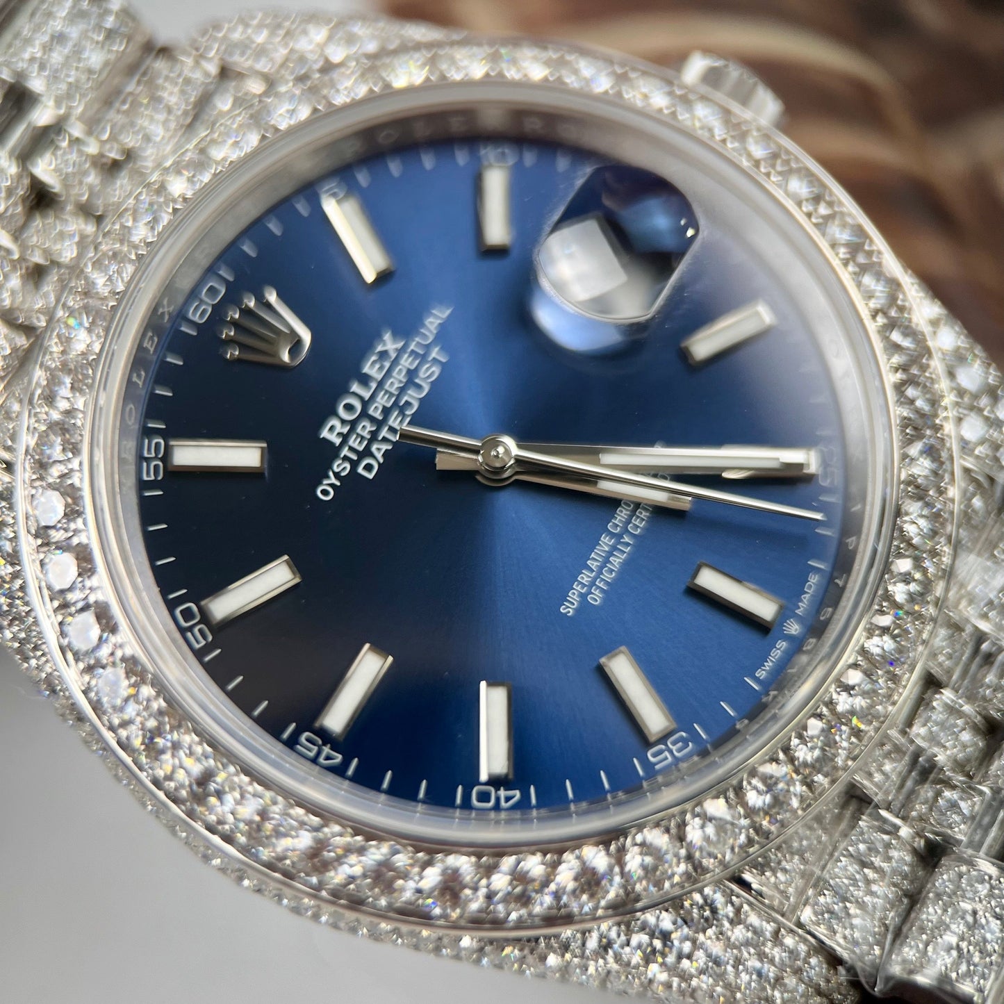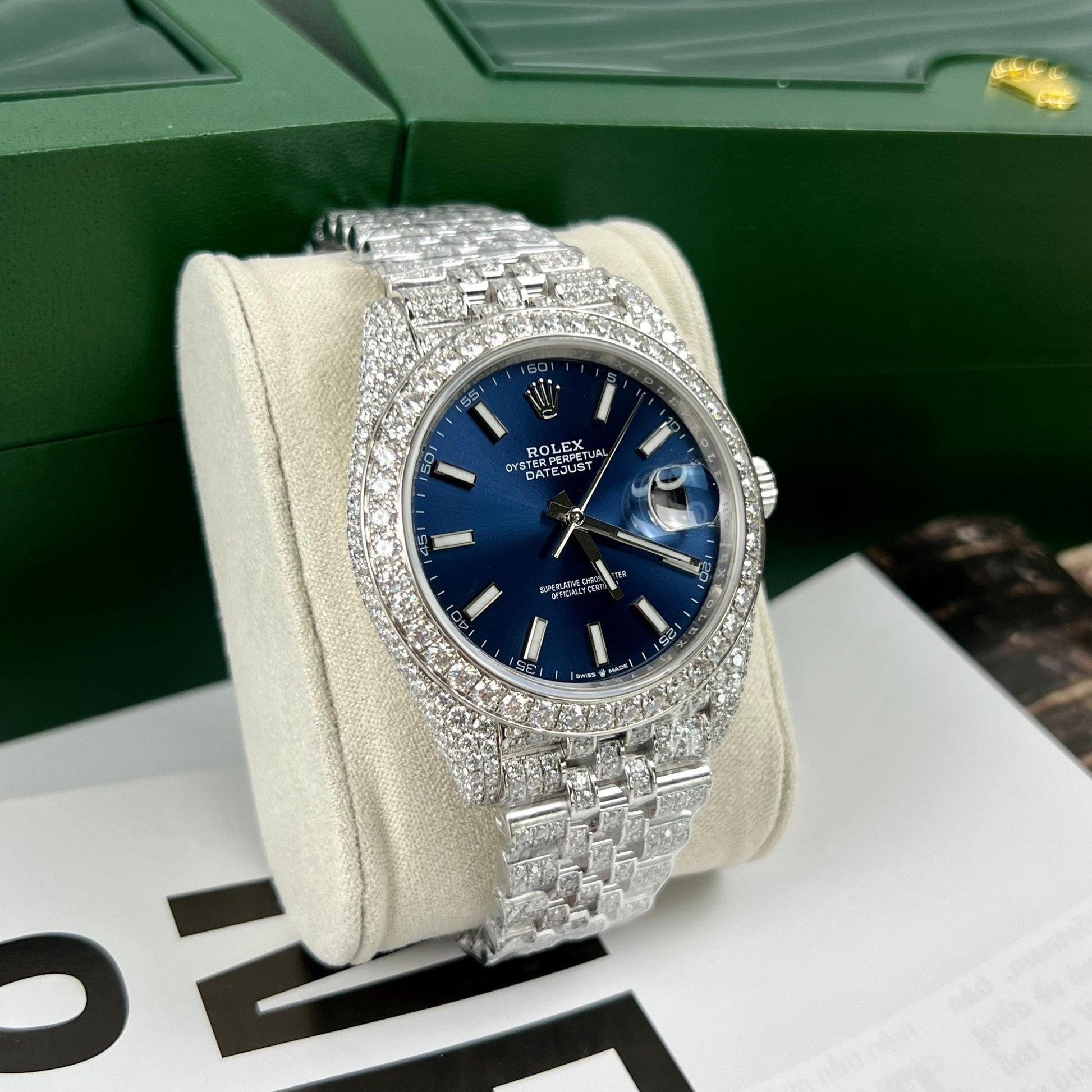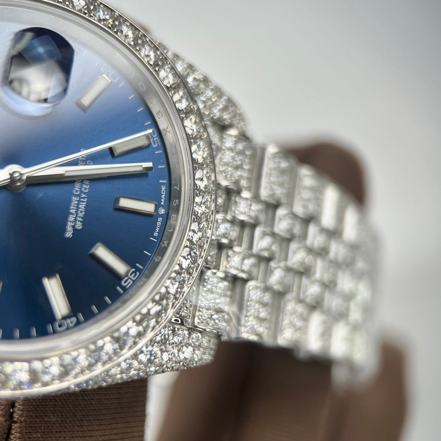 Rolex Datejust 41 Blue Dial Men's Watch 126334-0002 custom moissanite