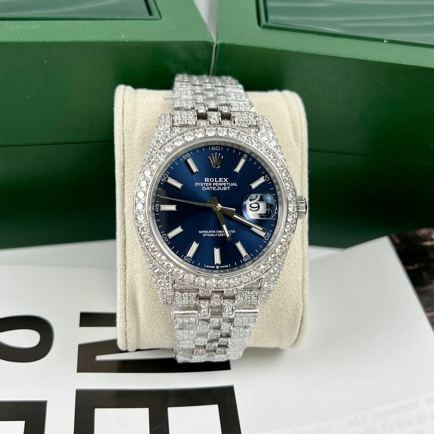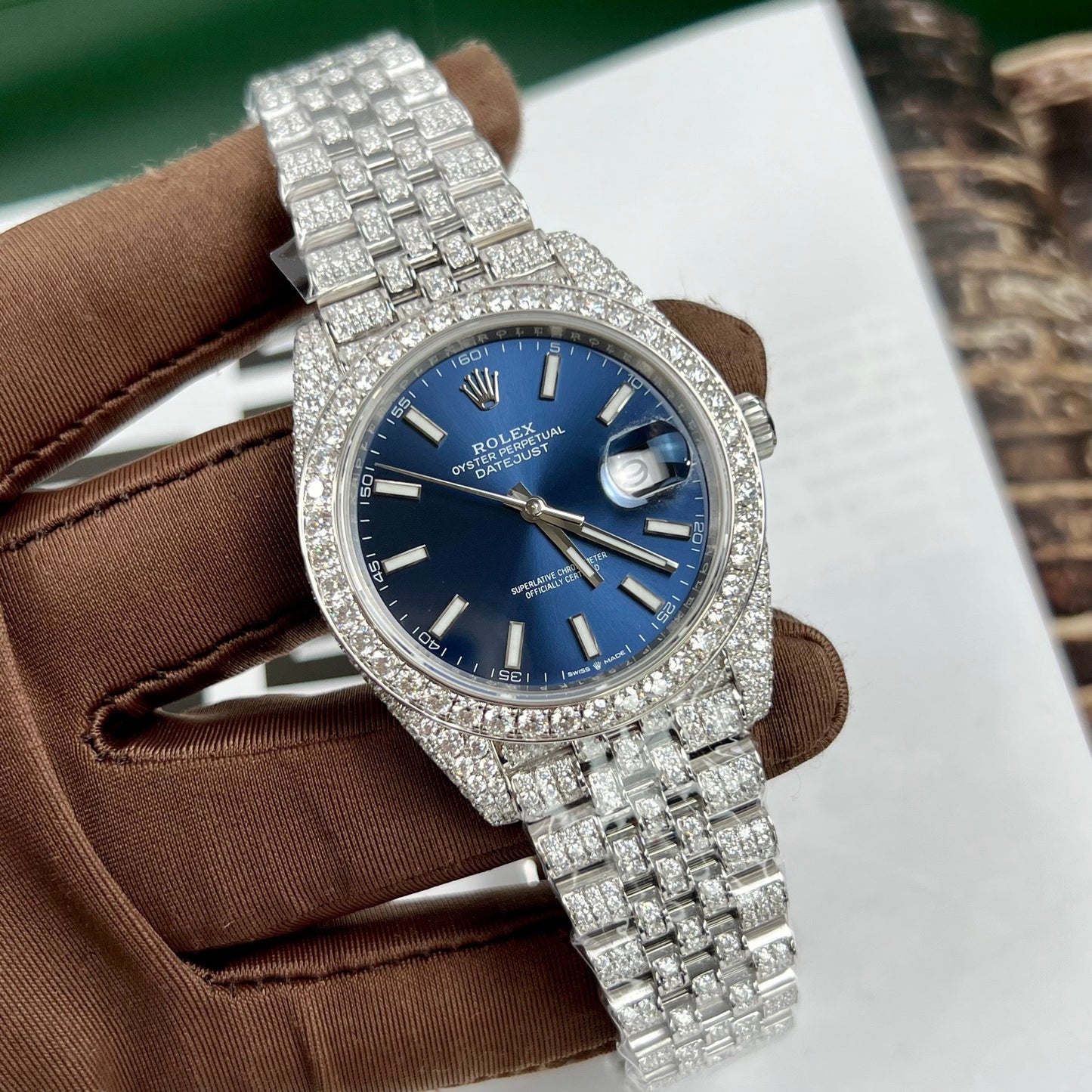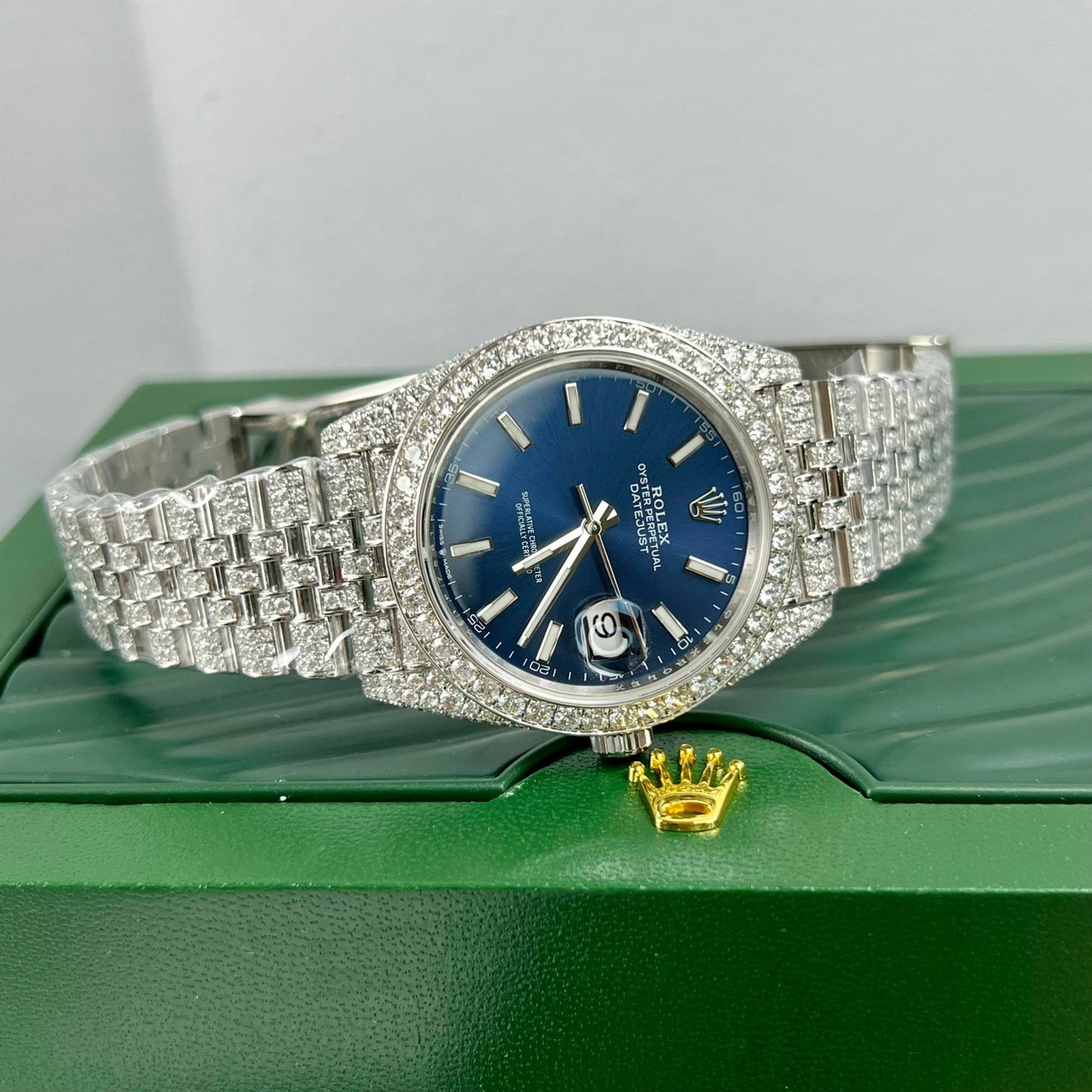 Rolex Datejust 41 Blue Dial Men's Watch 126334-0002 custom moissanite