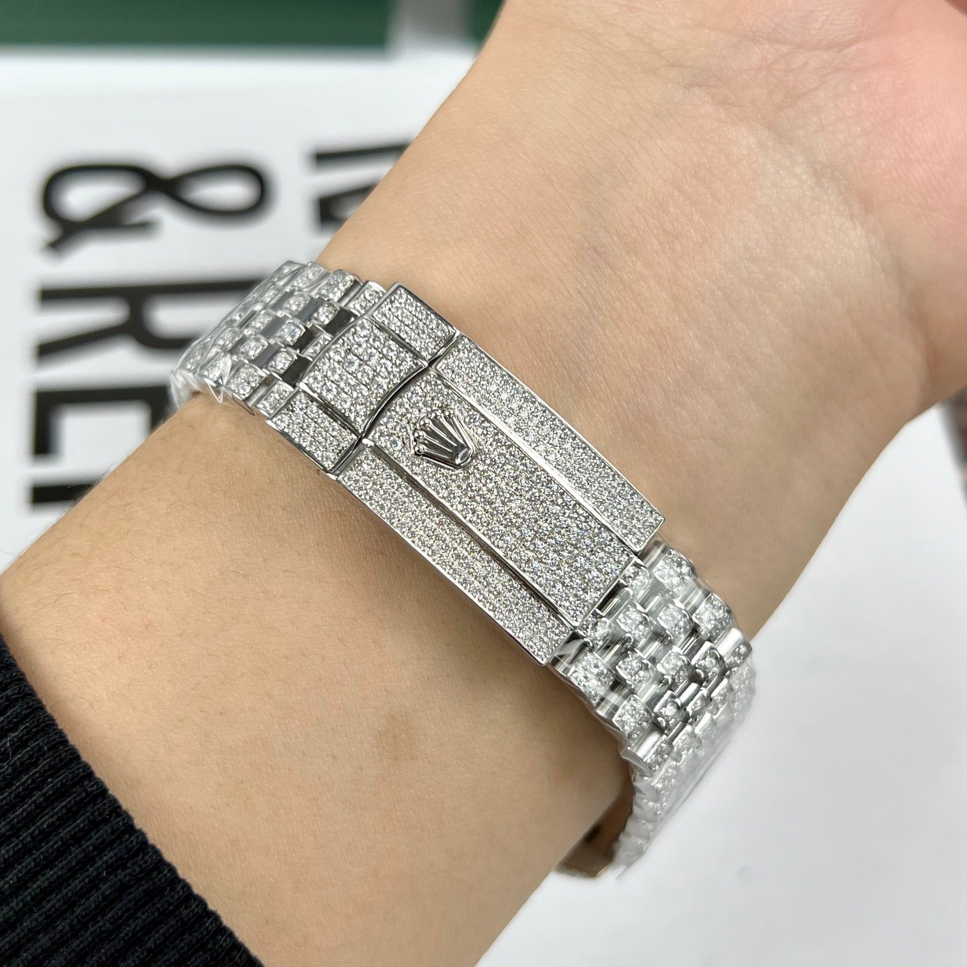 This is the best Rolex datejust currently produced by Clean Factory. The dial is clear with reflected light rays, the font is clear, and the luminescent is super bright. The stone on the watch is also a beautiful and bright diamond-like moissanite. 904L steel is also a lighter steel than other Factory. Scratch resistant sapphire glass. The latest model of the watch uses the latest datejust box lock.