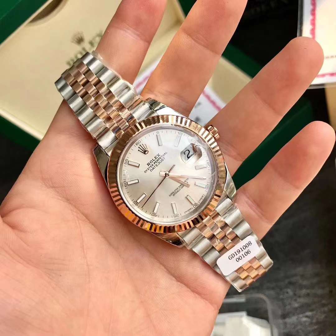 The happiness of rich people is so simple and unpretentious. The real gold watch is here. The whole body is covered with 18k gold, the thickness is 5um, and the GTC China authoritative certification certificate can be checked online! The watch diameter is 41mm, equipped with Swiss original eta-2824 movement and lifetime warranty! The Datejust II is a member of the Rolex Oyster family. It inherits the characteristics of the Oyster Perpetual Datejust watch that came out in 1945. The Datejust II made its debut in 2009 and is the first choice for those who advocate classics and pursue innovation. This revisited classic watch has its own unique charm and is even more noble. The Datejust watch is a classic of modern watches. It is also the world's first waterproof, self-winding watch with a calendar display window on the dial. Watch. This was an unparalleled technological innovation at the time, and the Datejust got its name. The triangular fluted outer ring has always been recognized as the iconic design of Datejust watches, making Rolex Datejust watches the most recognizable watch. When the Oyster watch was born in 1926, the triangular pit pattern had a specific purpose: to tighten the outer ring to a fixed position on the case to ensure the watch's precise waterproof performance. The Oyster case plays an important role in the history of Rolex. The watch case gets its name because it can be sealed like an oyster shell. With two major inventions, the screw-in bottom cover and the screw-in waterproof winding crown, the watch can operate perfectly in water. The screw-down winding crown and the screw-down bottom cover of the case are the core of the Oyster watch. Invented by Rolex in 1953, the double locking mechanism ensures that the screw-in crown is completely waterproof, relying on two sealing areas located in the tube and crown. All Oyster models are equipped with this device and are waterproof to a depth of 100 meters. The Oyster strap is the embodiment of perfect form, function, aesthetics and technology, exquisite and charming. Introduced in the late 1930s, this metal strap consists of three rows of wide, flat links. It is extremely strong and has always been the most widely used strap in the Oyster series. Influenced by the pioneer timepiece Datejust II, the Datejust II has a date window at 3 o’clock. The date changes instantly in just a few milliseconds in the early hours of the morning. The convex-type magnifying calendar window invented by Rolex in 1953 magnifies the date 2.5 times, making it easier to read.