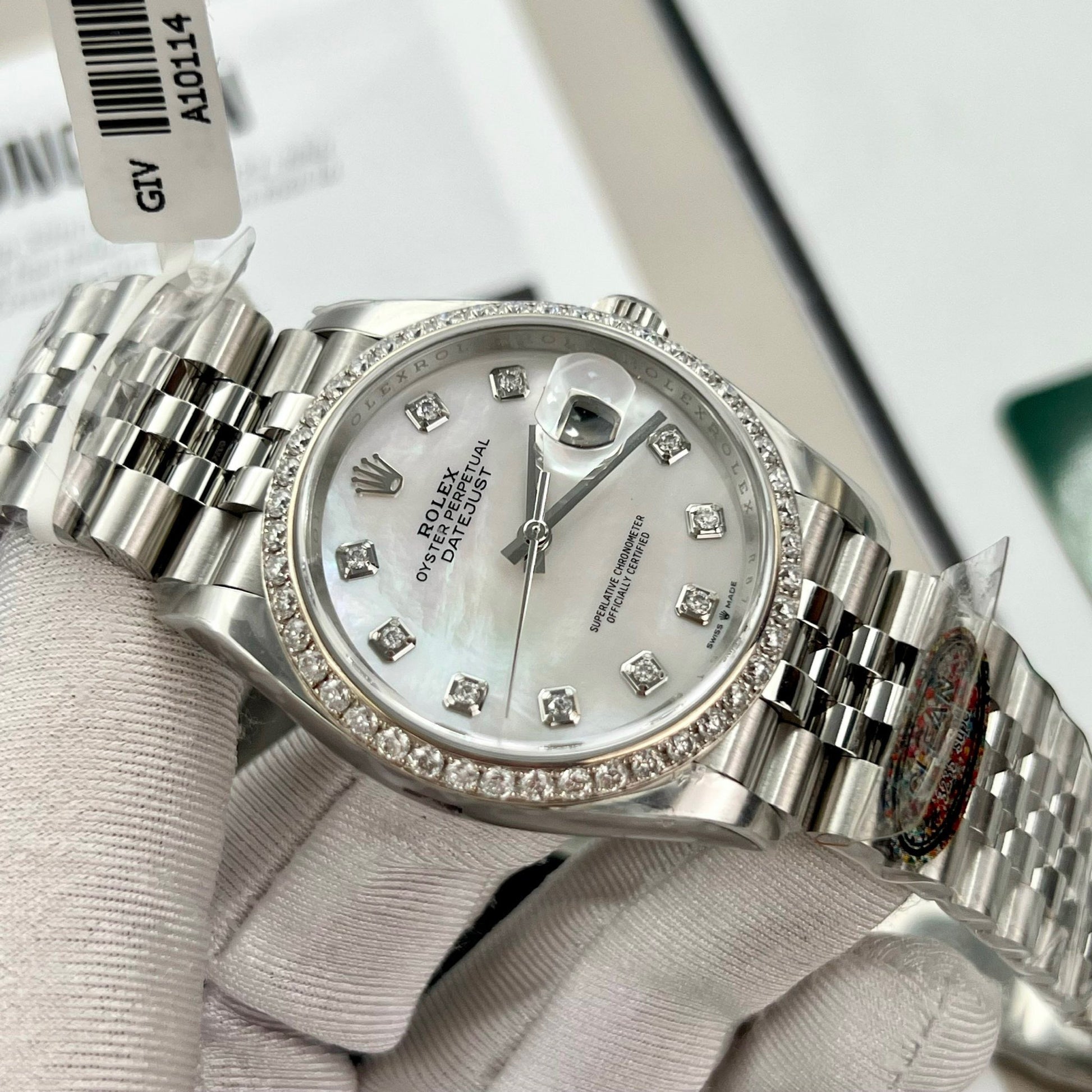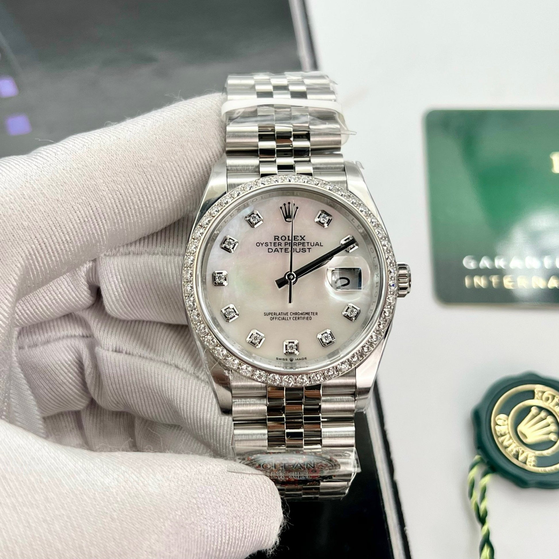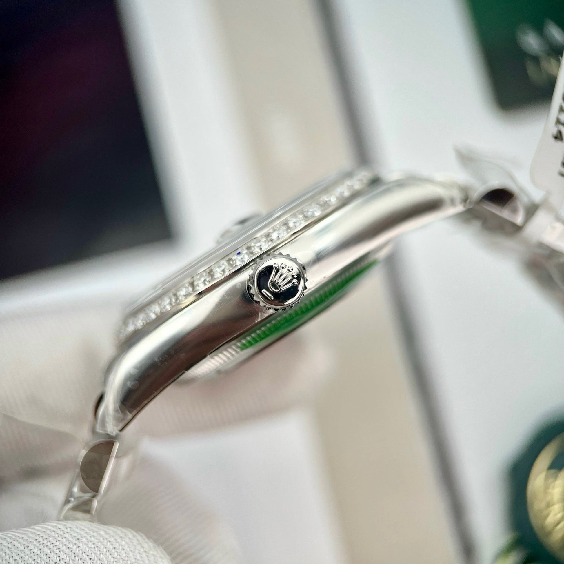 It can be said that the Rolex datejust made from the Clean factory is a perfect copy. Now this version has been handcrafted with a moissanite diamond bezel. With moissanite diamonds, the watch's bezel is as bright as a natural diamond. While the price is quite cheap.