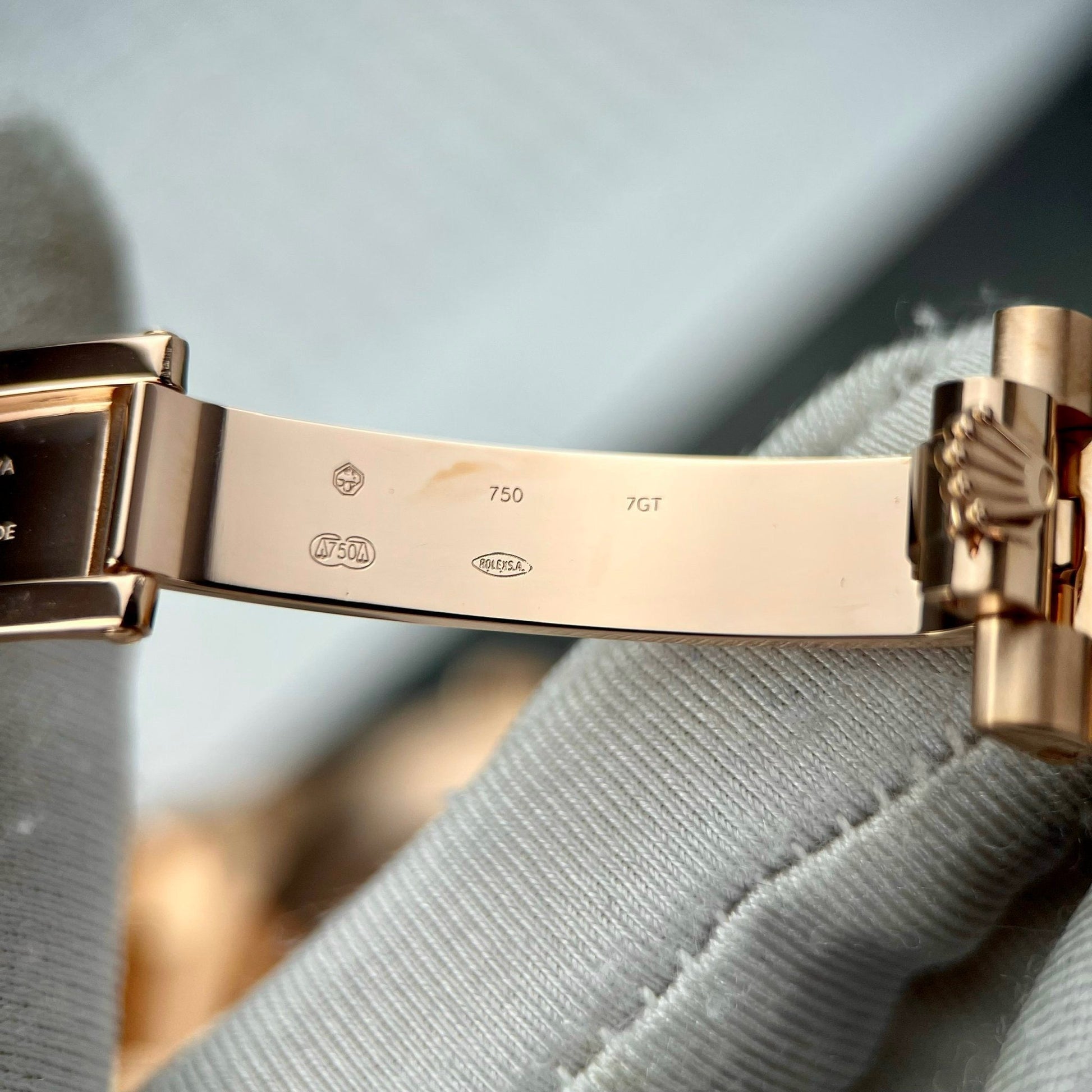 Material: 904L steel for both case and band 18k rose gold coated