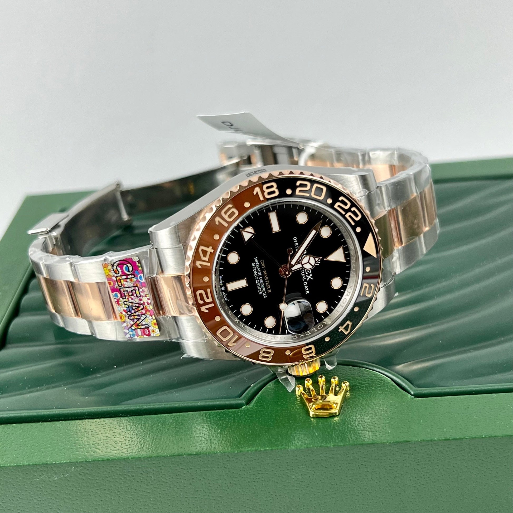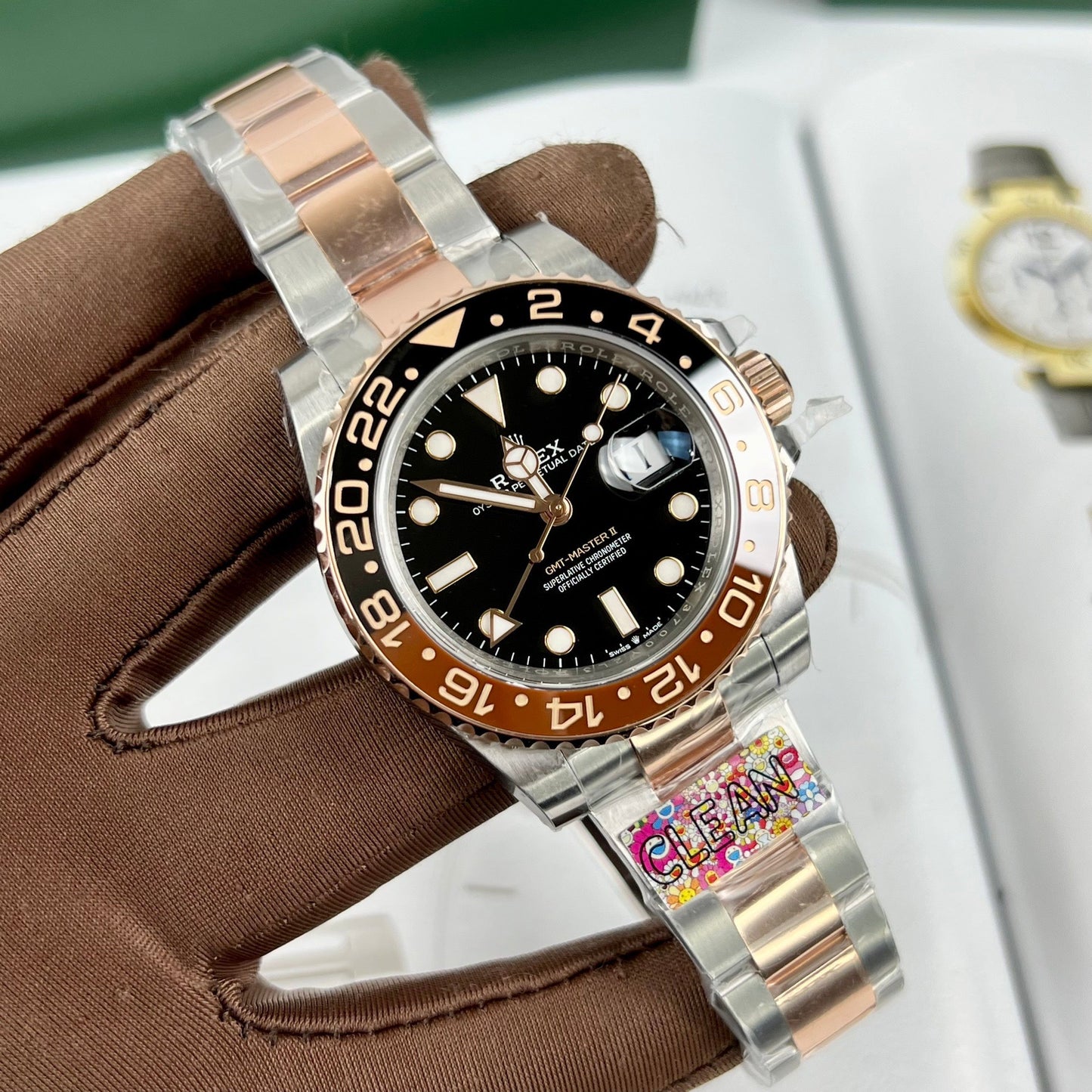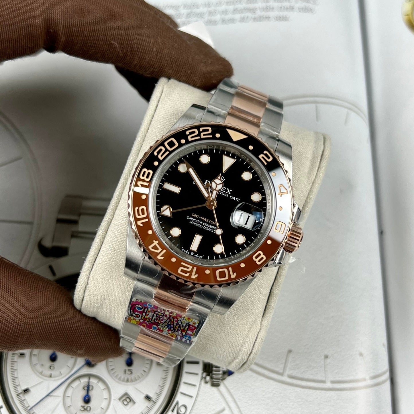 If you are looking for a perfect GMT. Then this is the version you are looking for. The Clean Factory has created a new version of the GMT series with the 3285 Movement. The stamp set has also been changed for the old versions of the 3186.This version has been fully gold-plated on the case and band. Make it more perfect, more beautiful