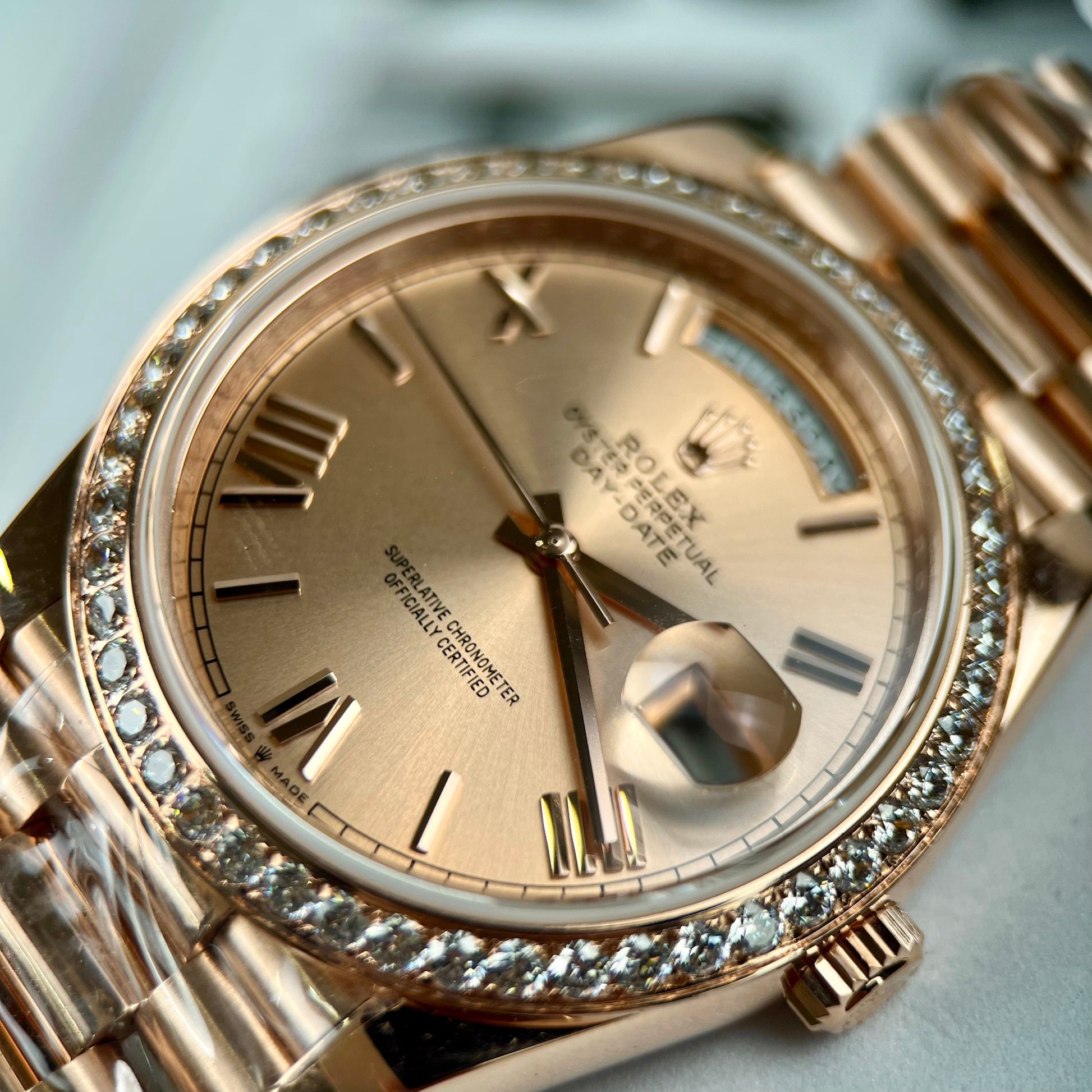 Rolex Oyster Day-Date 40mm 228235 coated 18k rose gold Best 1:1 Edition 130 gram moissanite bezel