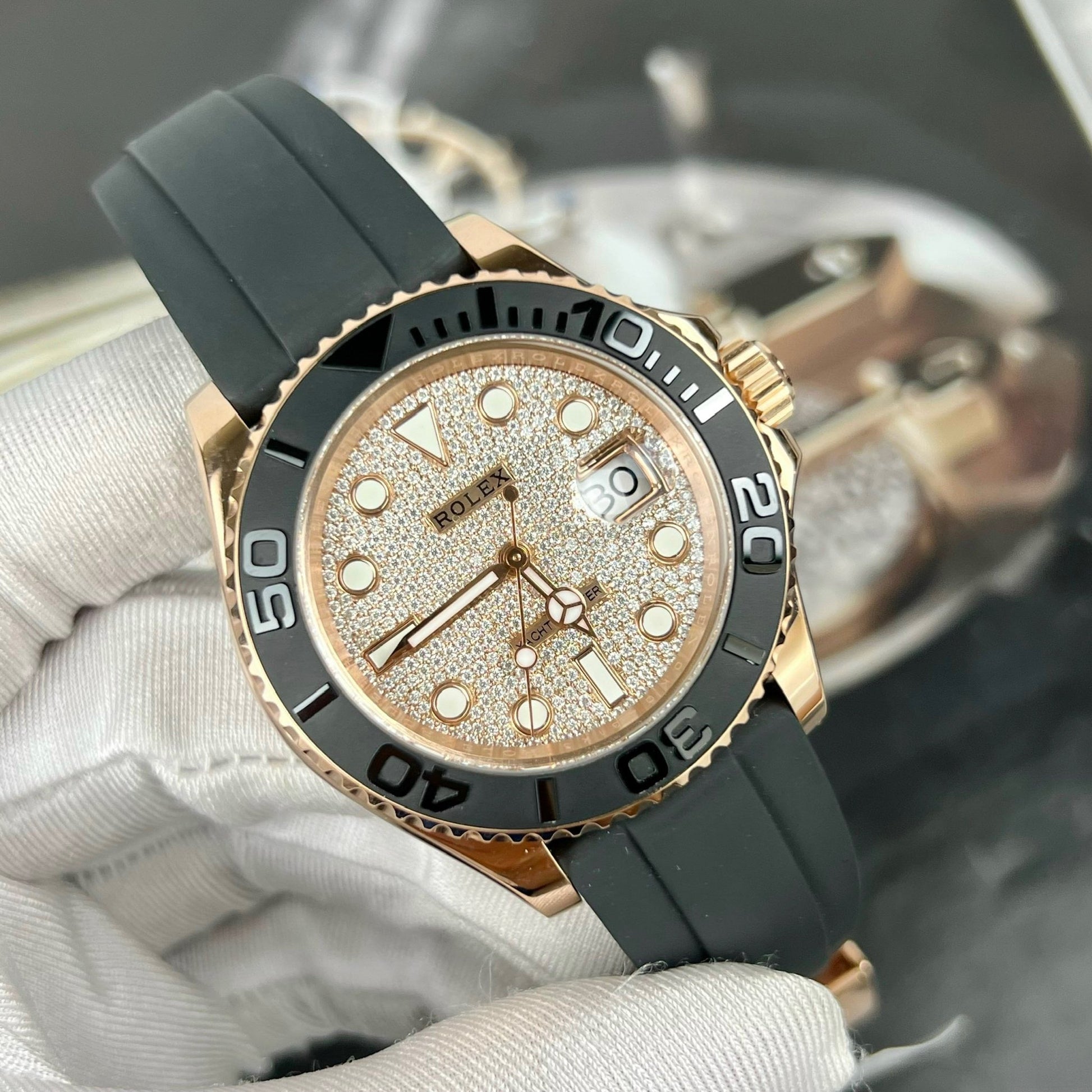 Rolex Yacht-Master 40 126655 Pave stone dial - 3235 Movement coated 18k gold and moissanite