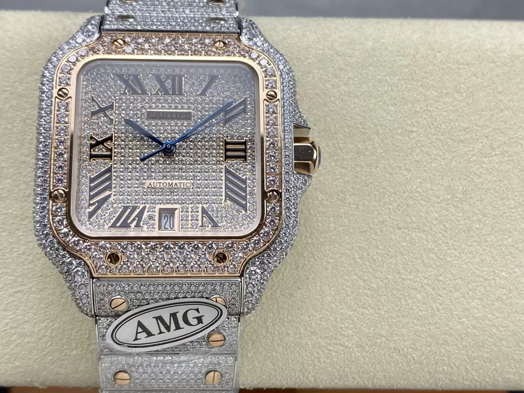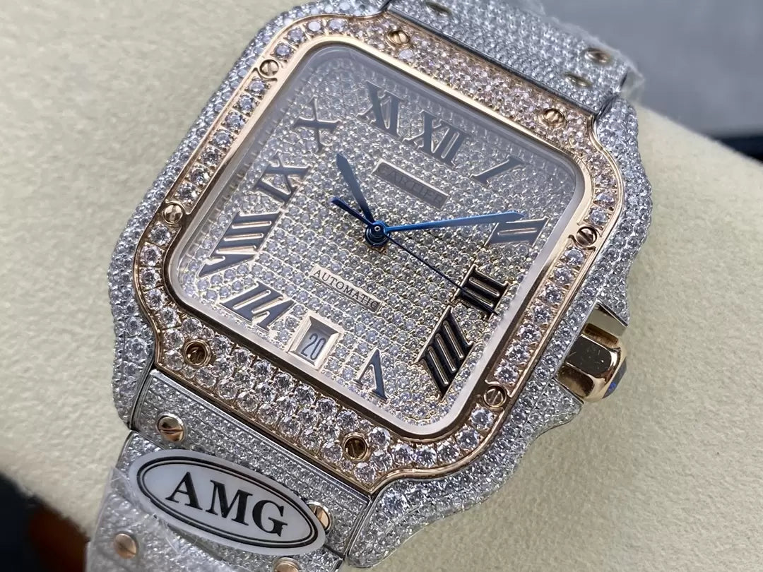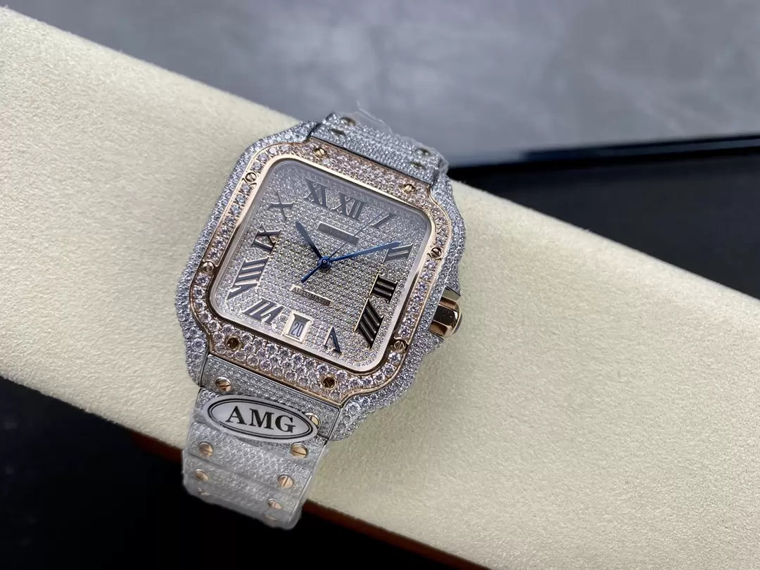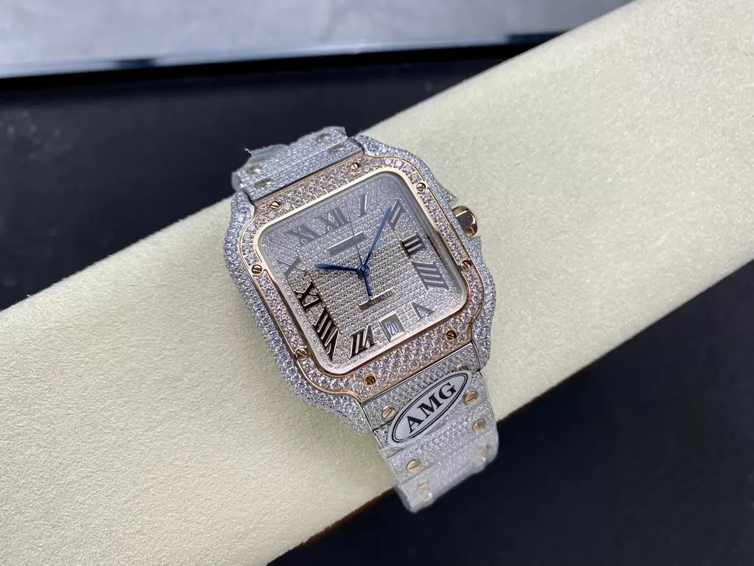 Santos De Cartier Diamond Watches Rose Gold Dial 1:1 Best Edition AMG Factory Swarovski Stone