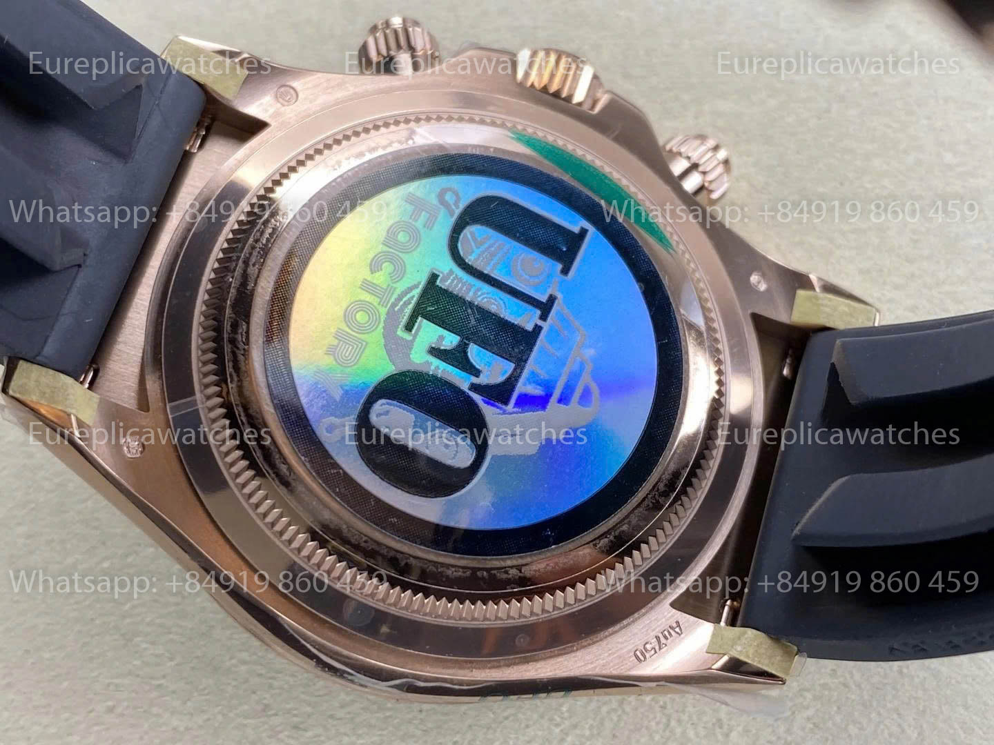 UFO Factory Daytona 4131 sets a new benchmark in the replica watch market, redefining standards with its latest self-developed technology. This model is equipped with the exclusive Free Sprung Balance Wheel Super Clone Calibre 4131, officially launched by UFO Factory, representing the highest shop-grade level and eliminating the obvious flaws often seen when opening the caseback at first glance.
